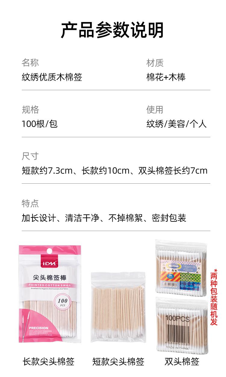 7cm pointed cotton swabs 10 packs/about 1000 PCs, 10cm pointed cotton swabs 10 packs/about 1000 PCs, Double-he...