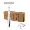 Maquinilla de afeitar antigua de acero inoxidable con soporte para maquinilla de afeitar manual con cuchilla de doble filo para hombre