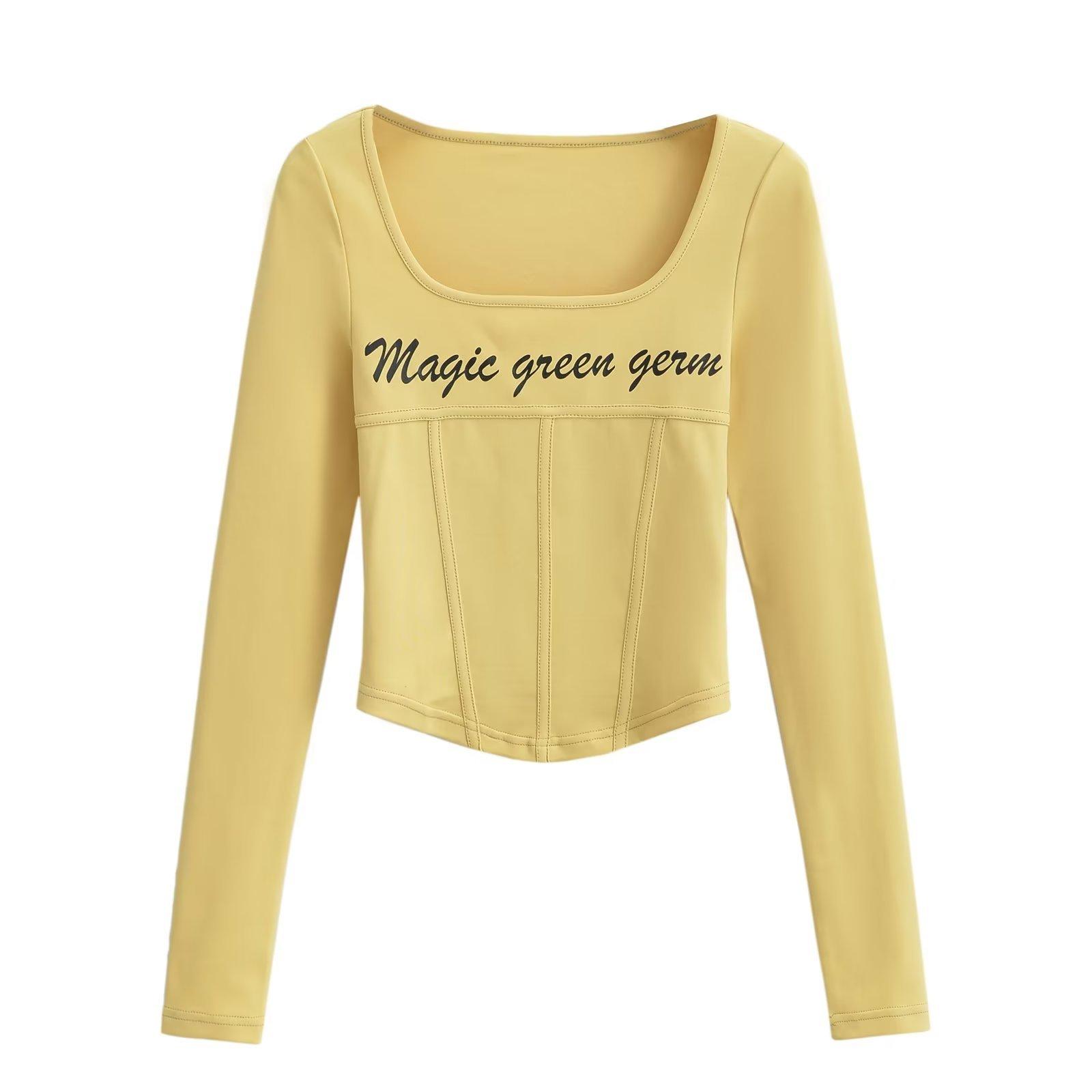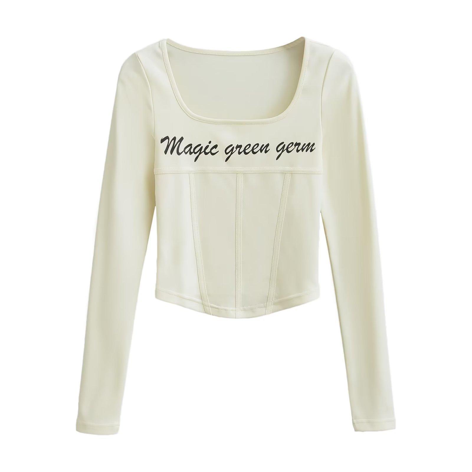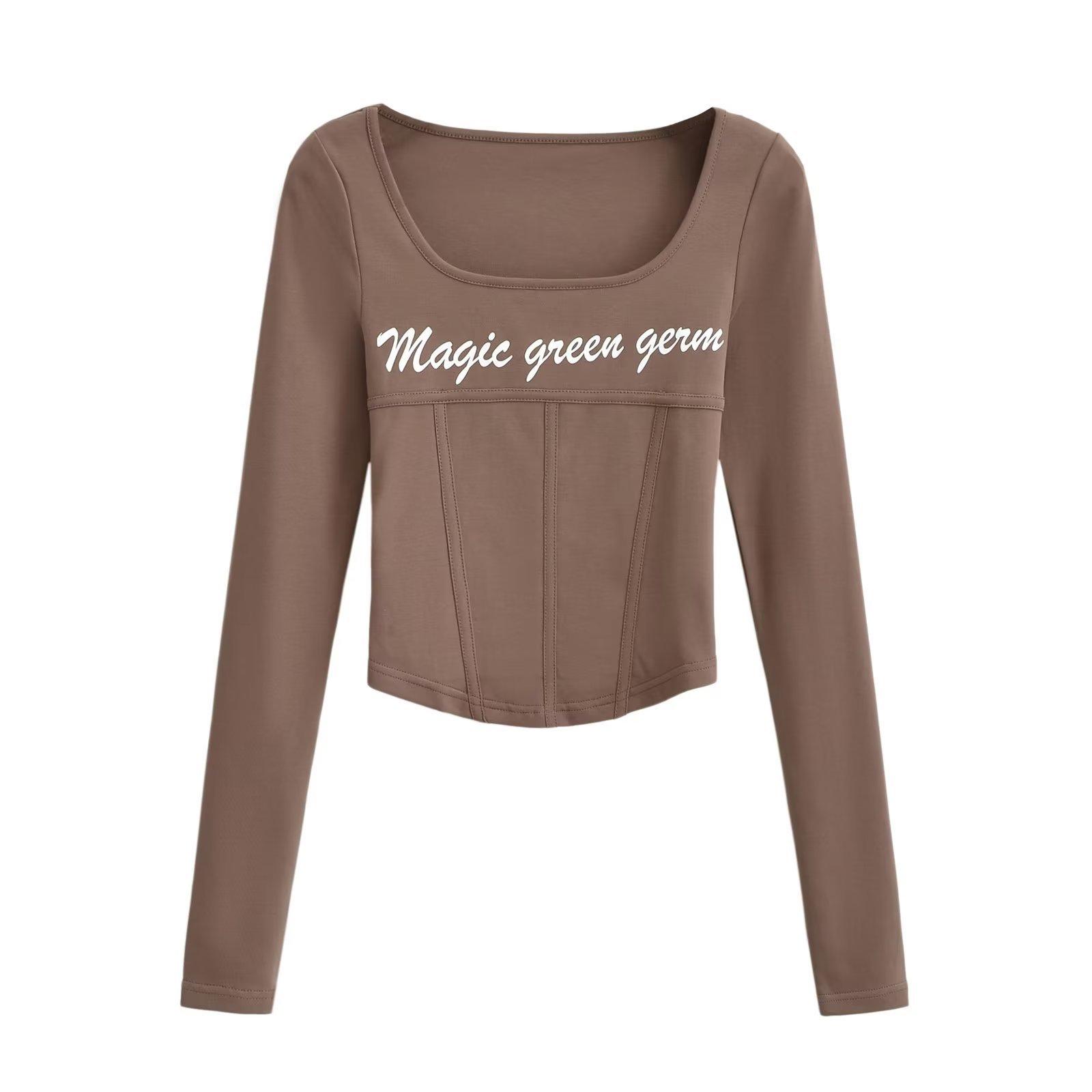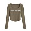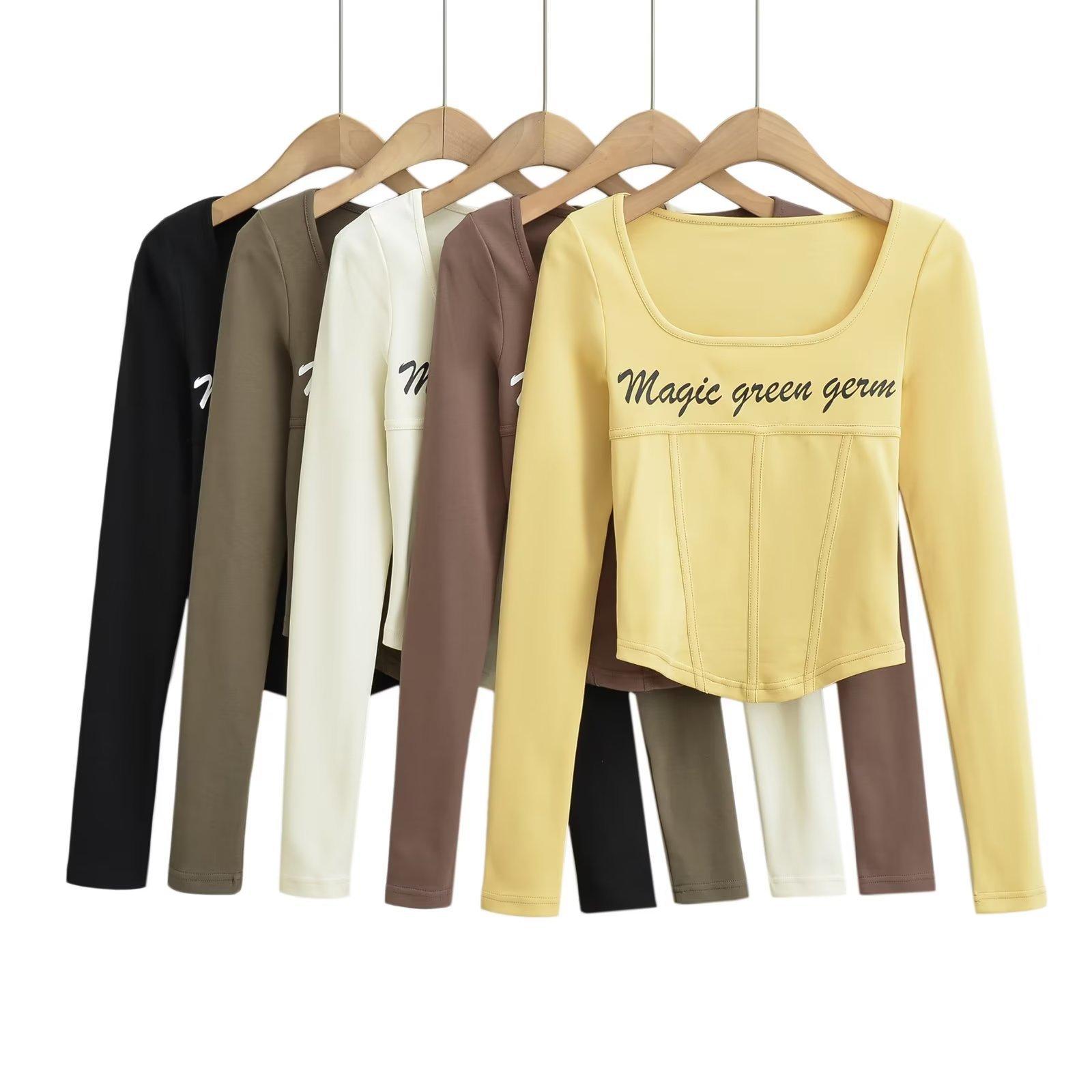 Camiseta de manga larga con cuello redondo y corte entallado para chica, estilo americano, otoño e invierno de 2023, nueva moda europea y americana, color sólido