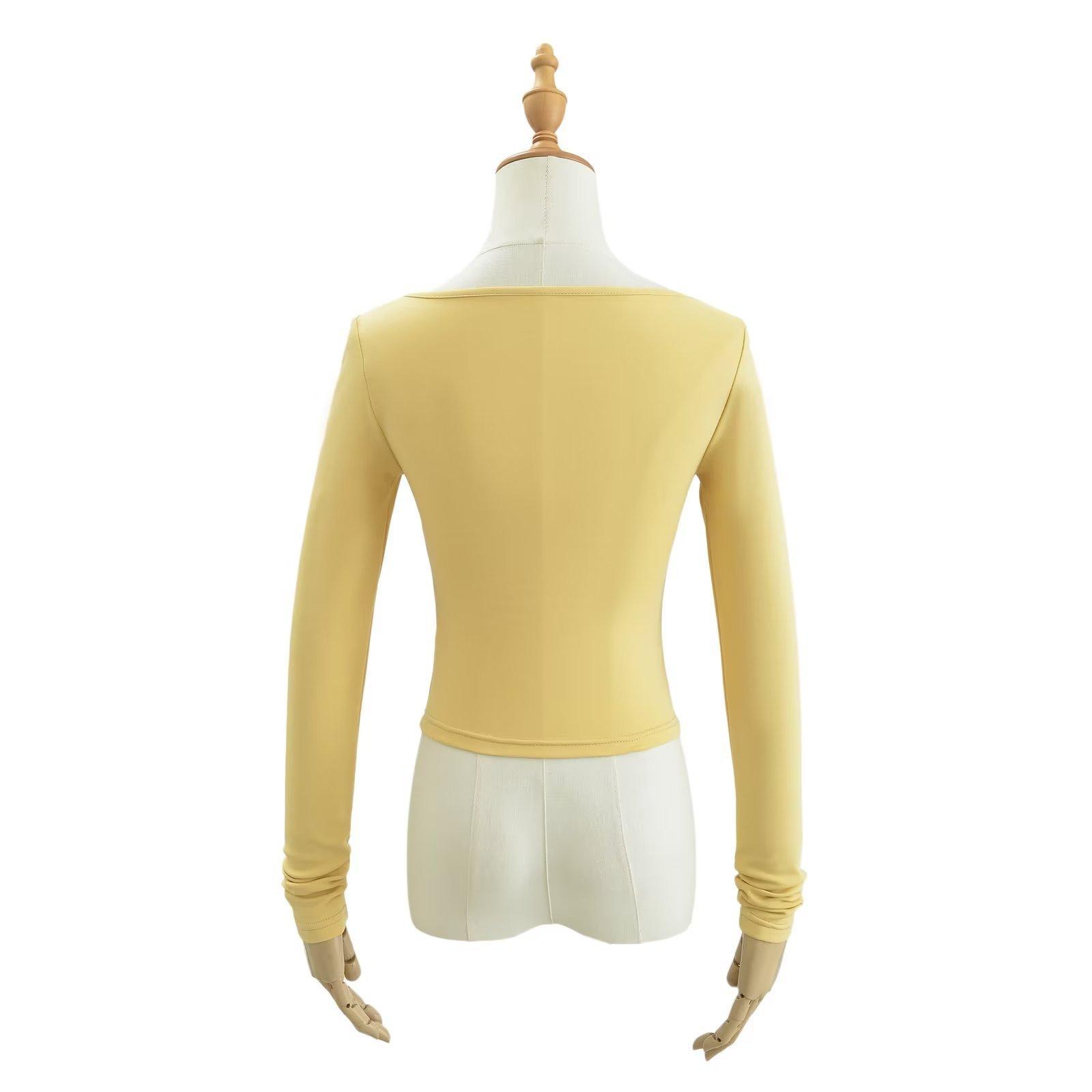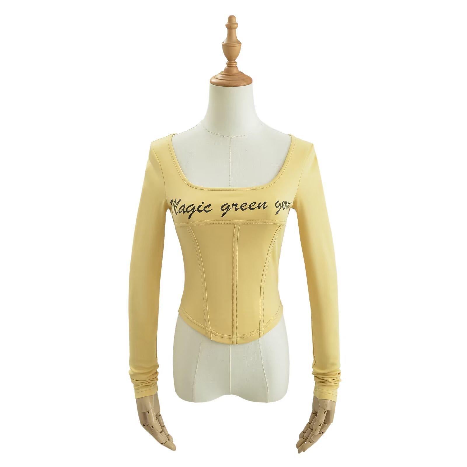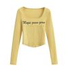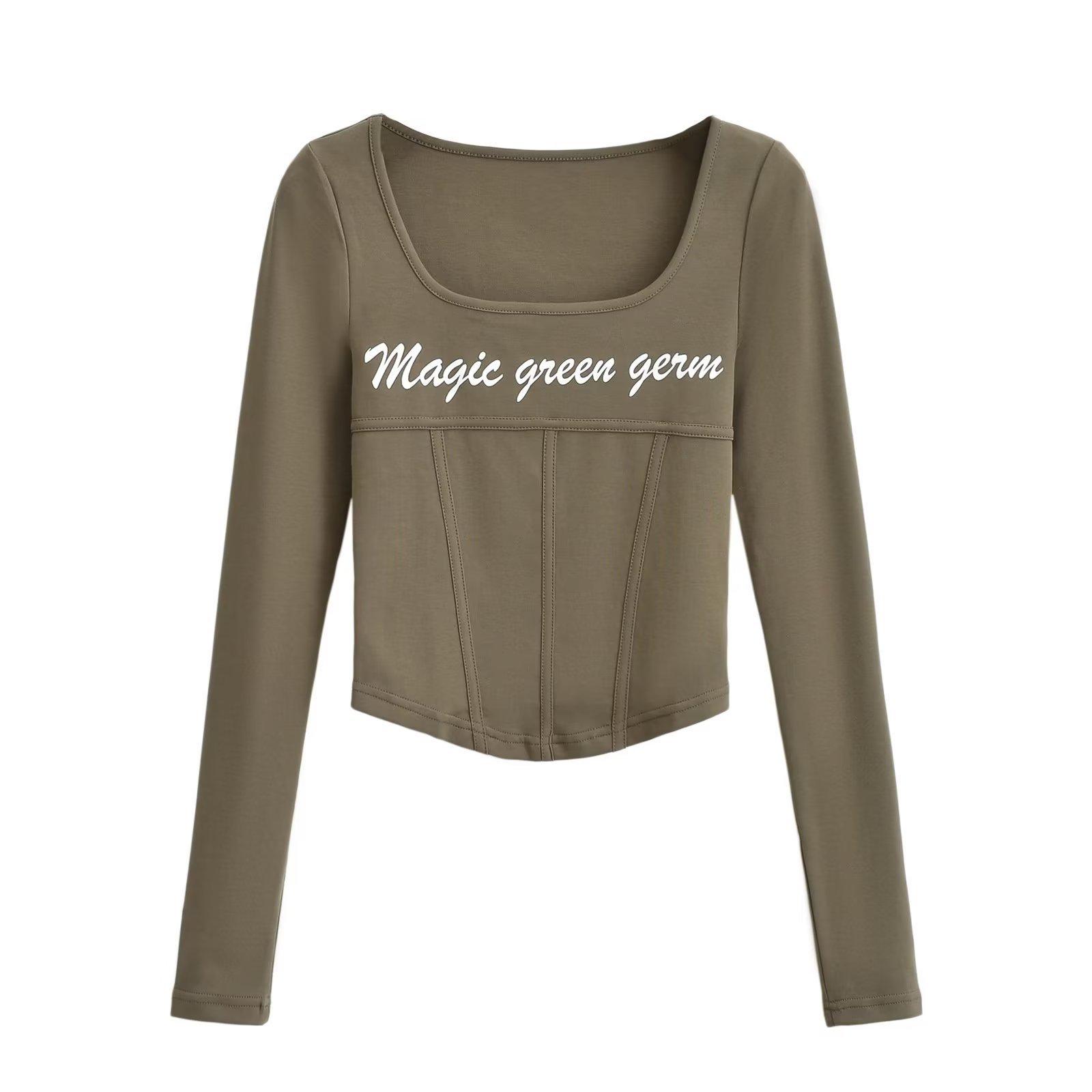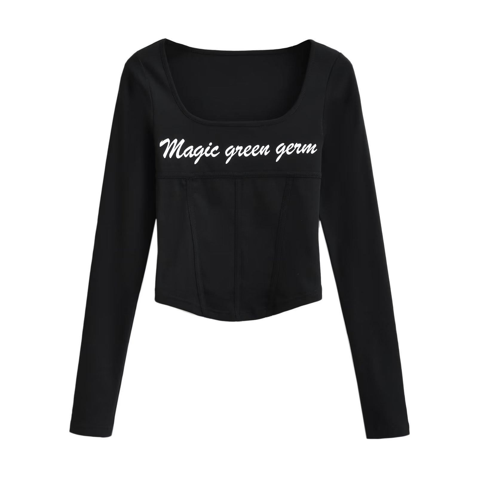 Camiseta de manga larga con cuello redondo y corte entallado para chica, estilo americano, otoño e invierno de 2023, nueva moda europea y americana, color sólido