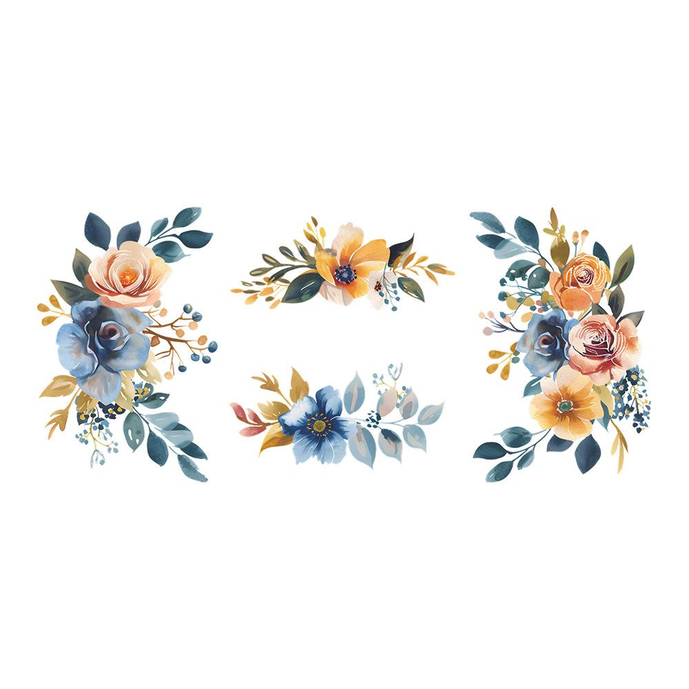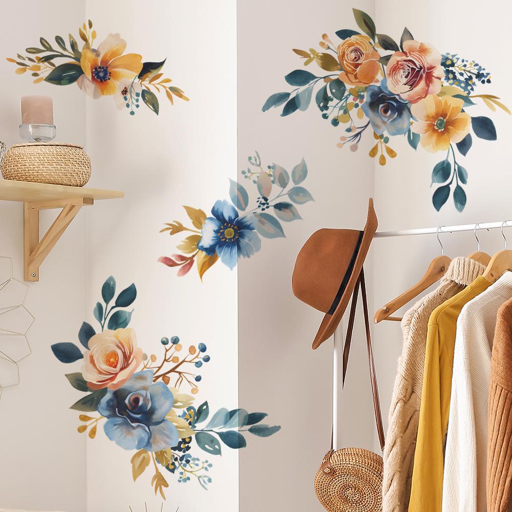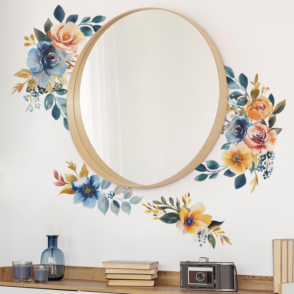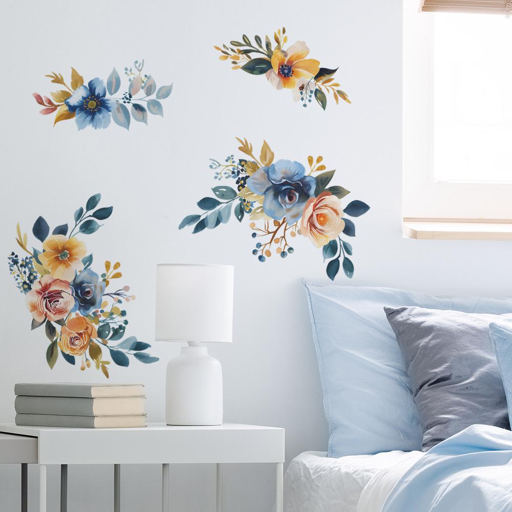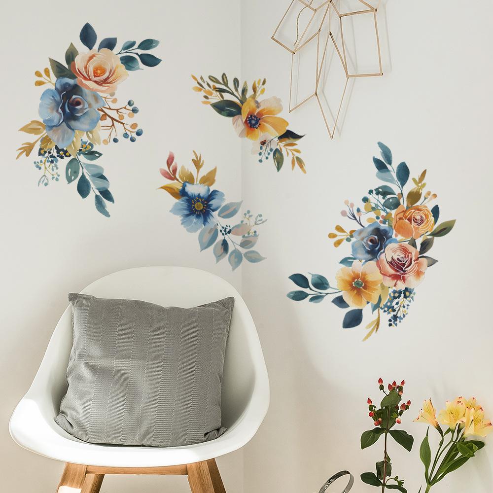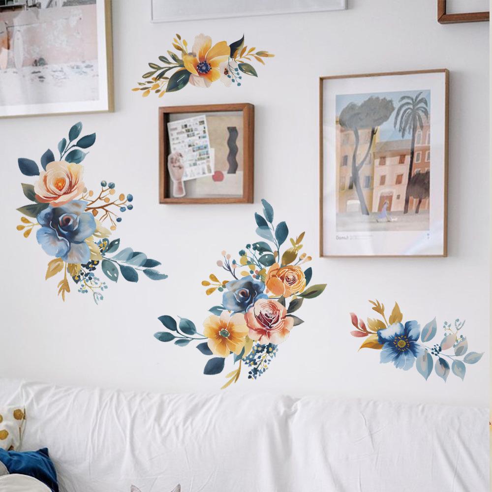 Pegatinas de pared autoadhesivas de comercio exterior con diseño de flores azules y amarillas para dormitorio, sala de estar, porche, decoración del hogar, venta al por mayor transfronteriza