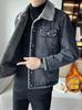 Chaqueta de Otoño e Invierno para Hombre Chaqueta de Mezclilla Retro Chaqueta Casual Juvenil Forrada con Vellón Coreana Ajustada para Hombre Transfronteriza