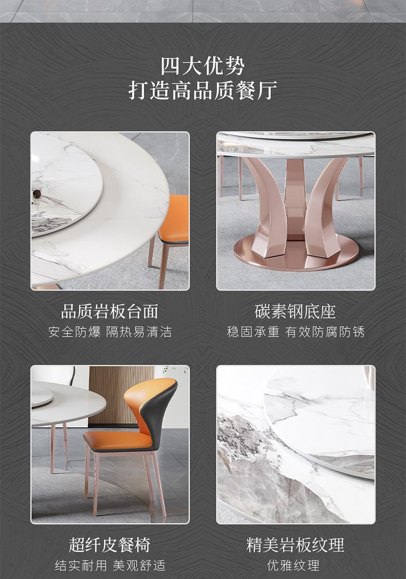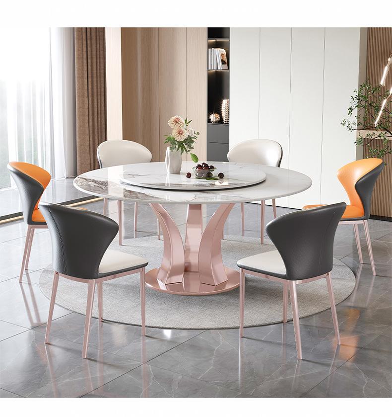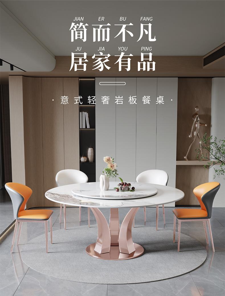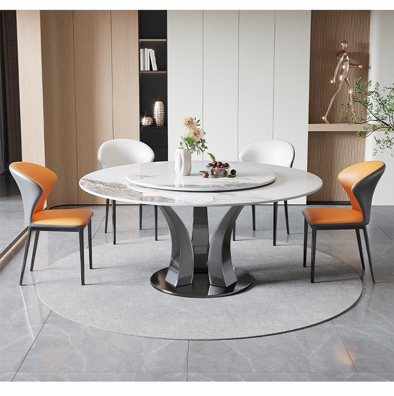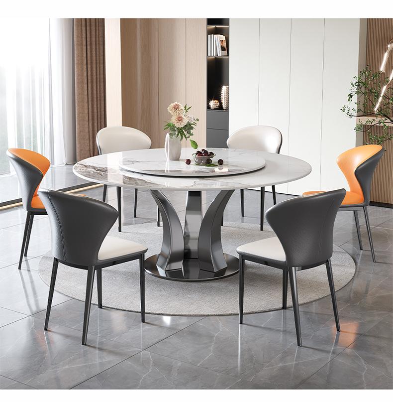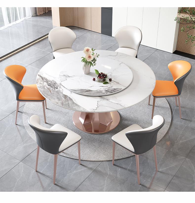 Mesa de comedor y silla Rock Board, combinación moderna, estilo italiano, estilo lujoso y ligero, mesa redonda para restaurante, mesa redonda para el hogar con plato giratorio.