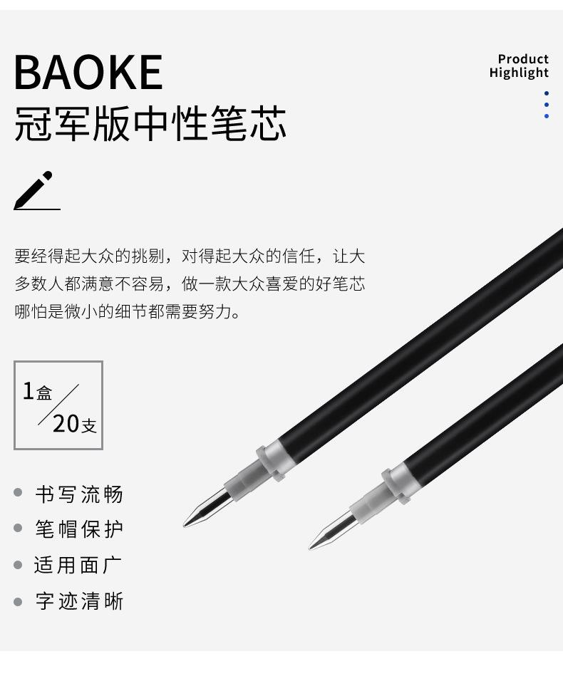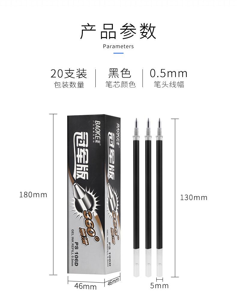 Recambio de tinta neutra Baoke PS106D, punta de titanio lisa de 0,5 mm [Venta al por mayor en Guangzhou]