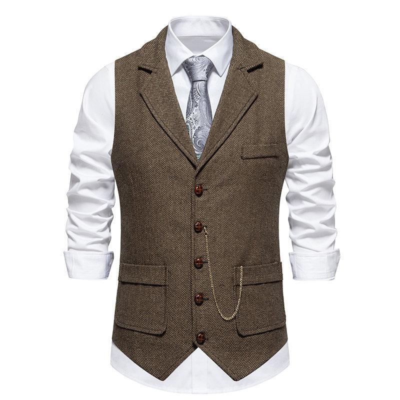 Chaleco de traje para hombre con cadena de solapa retro con código europeo nuevo de primavera y verano 2024 al por mayor de Amazon transfronterizo