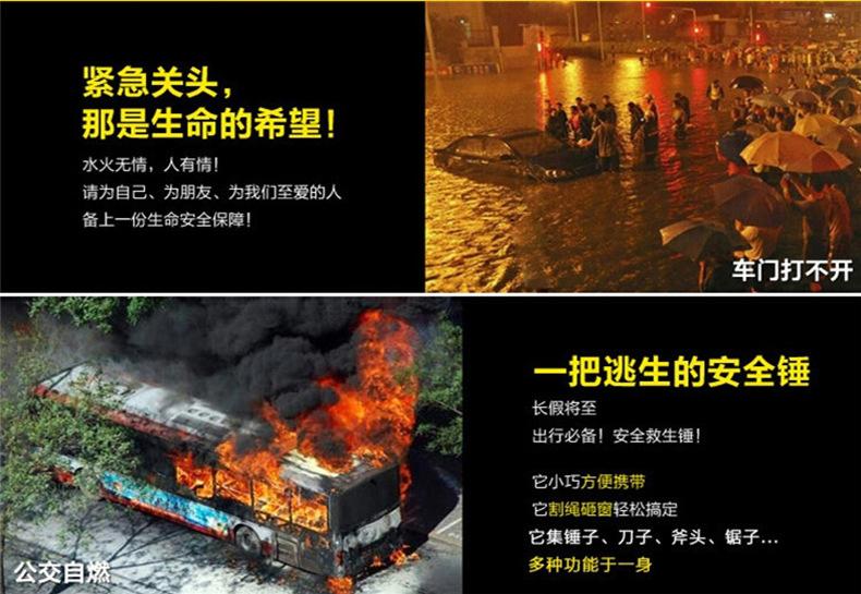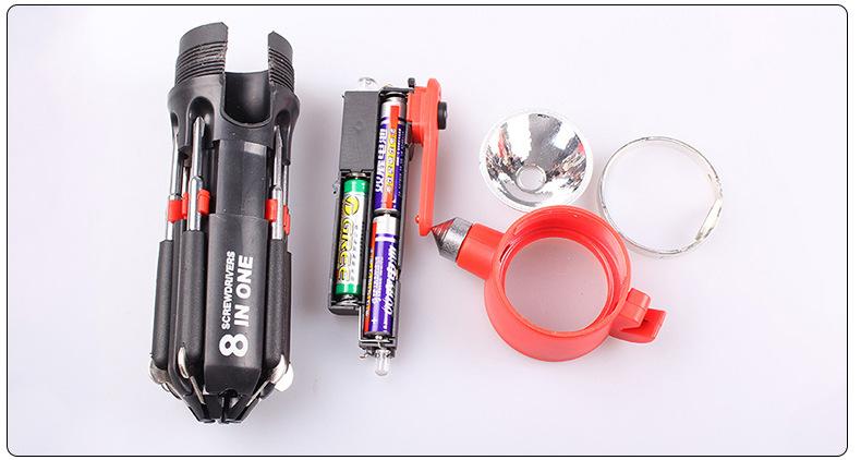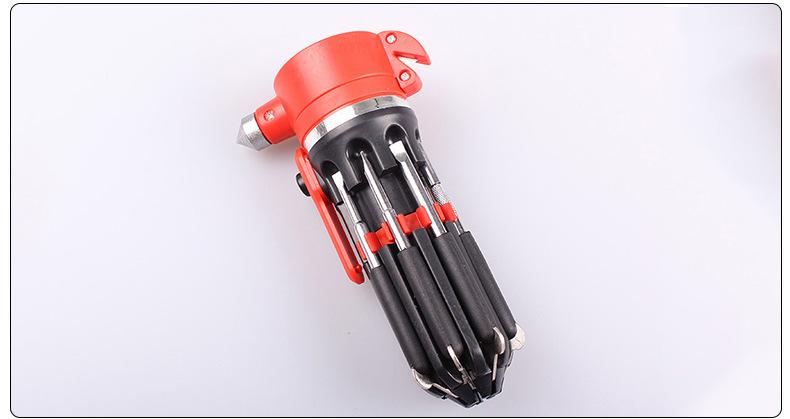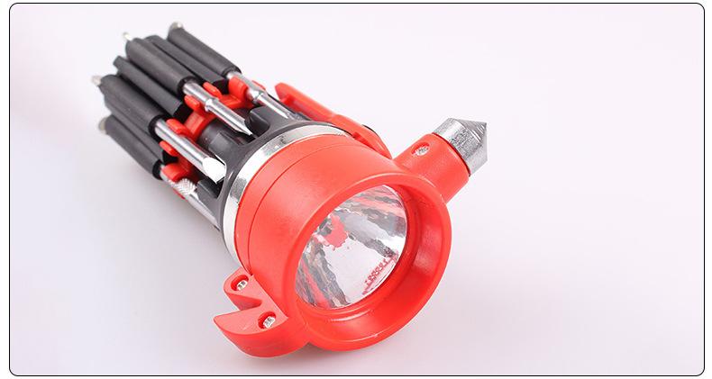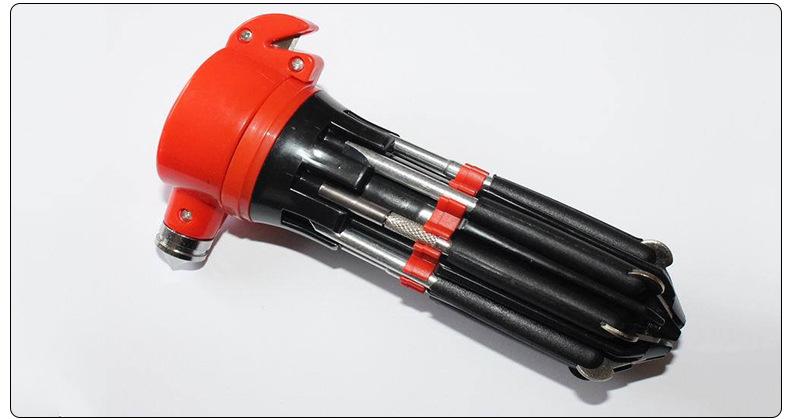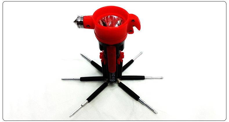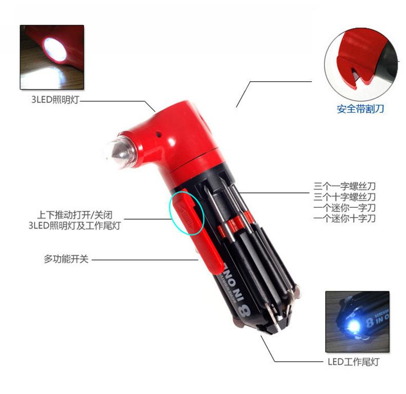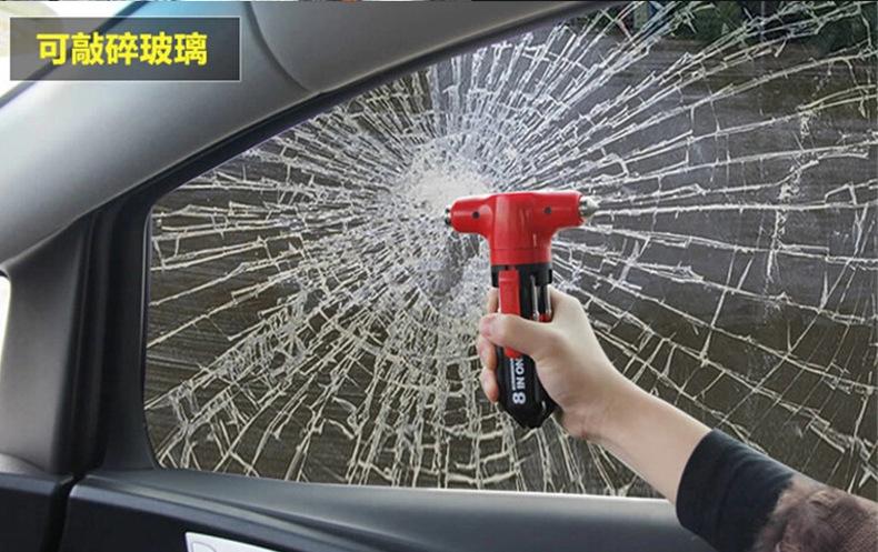 Martillo de seguridad de escape y rescate multifuncional ocho en uno, rompeventanas, martillo de autodefensa, linterna, destornillador, herramienta de emergencia combinada