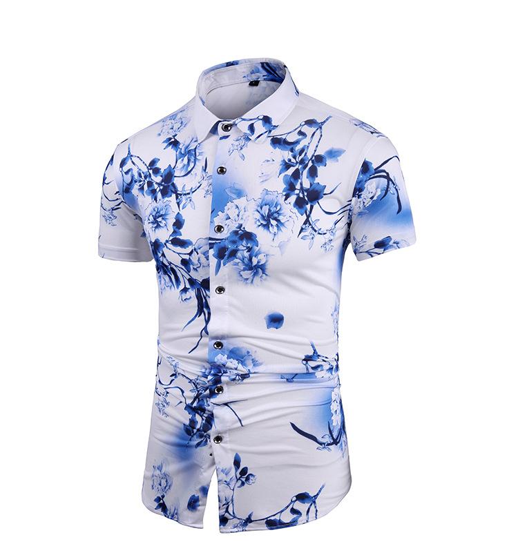 Camisa de manga corta con estampado floral para hombre, nueva camisa informal holgada de talla grande con solapa, para comercio exterior transfronterizo 2024