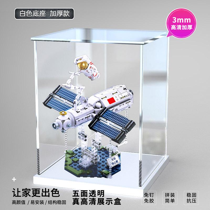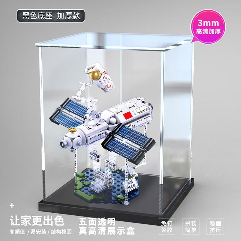 Caja de exhibición de juguetes de acrílico adecuada para el día de la estación espacial de China y cubierta antipolvo para almacenamiento manual de cabina central.