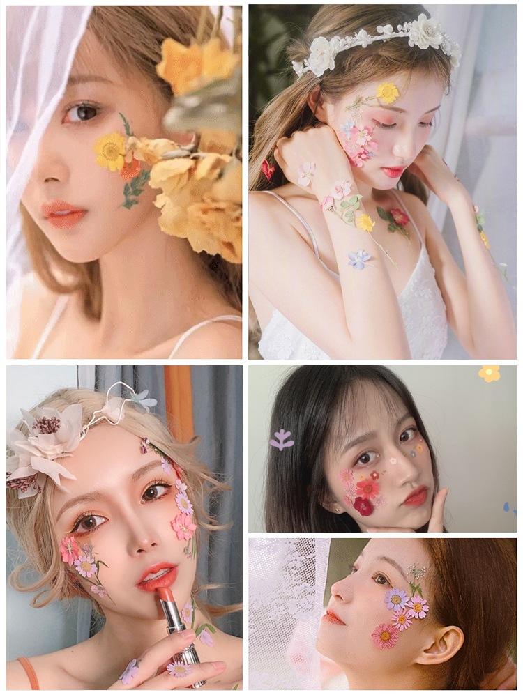 Manicura Flores Secas, Fotos Estilo Bosque, Belleza Flores Secas, Pegatinas Faciales Estilo Hada, Flores Secas Decorativas