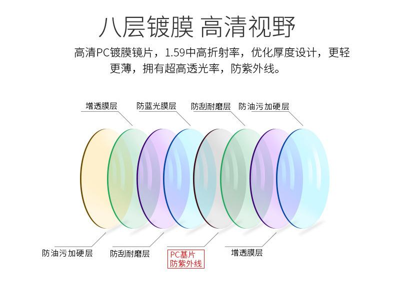 6. No use gafas durante ejercicio intenso para evitar impactos fuertes que puedan romper las lentes y causar daños en los ojos y la cara. No use lentes desgastados para evitar que la dispersión de la luz cause pérdida de visión. No mire directamente al sol ni a una luz intensa y deslumbrante para evitar daños oculares.