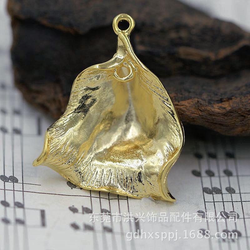 Accesorios de joyería hechos a mano: pendientes de oro auténtico de 24 quilates, pulsera, accesorios de cuentas, horquilla, dije de hoja de loto de cobre A701
