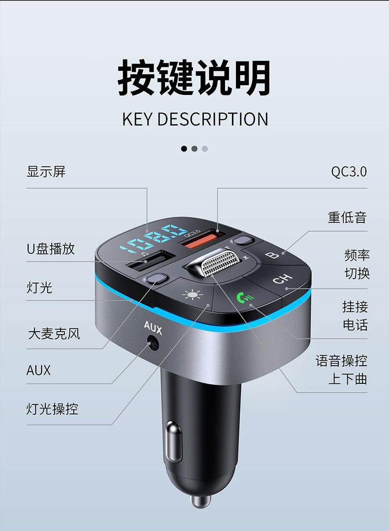 Este producto es un reproductor MP3 Bluetooth para coche que utiliza un módulo Bluetooth de alto rendimiento y grado profesional y un chip de decodificación MP3.