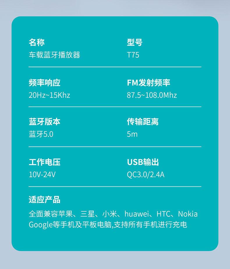 Puede reproducir los archivos de música en la tarjeta TF y transmitirlos al estéreo del automóvil a través de FM inalámbrica.