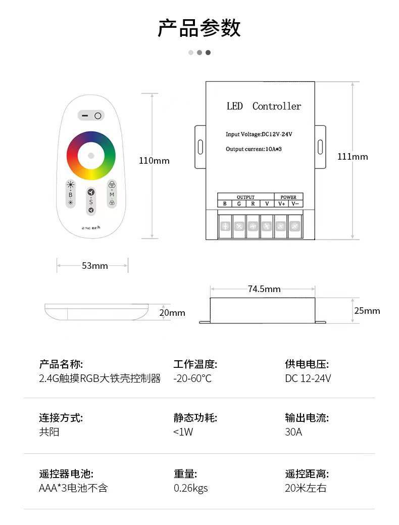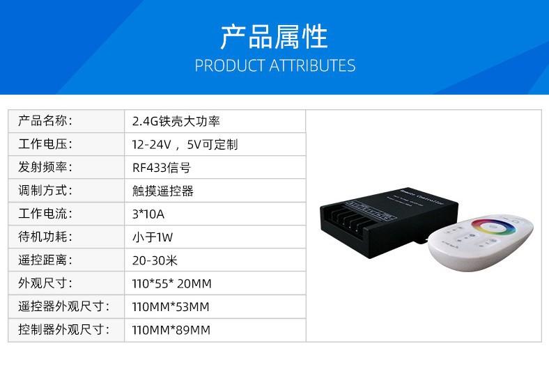 Tira de Luces LED RGB Colorida de Alta Potencia Carcasa de Hierro Controlador 30A 5-24V Táctil Control Remoto 2.4G Flash 360W