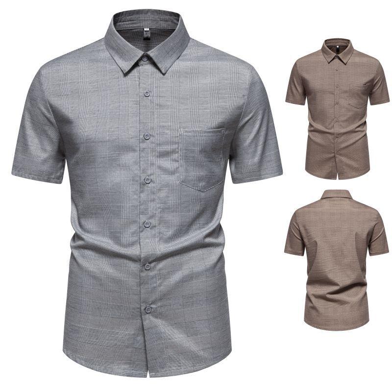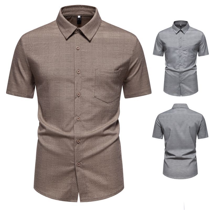 Camisa clásica a cuadros de manga corta con solapa informal para uso diario, de Amazon, de verano, talla europea