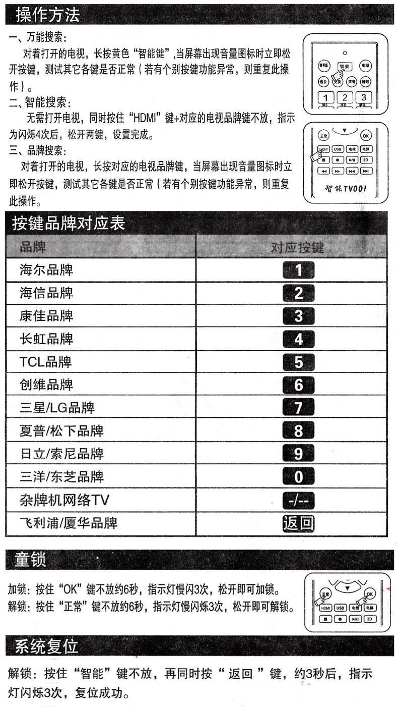 Universal for lcd tv (cannot be used with voice), Universal lcd tv (read the instructions on the back before u...