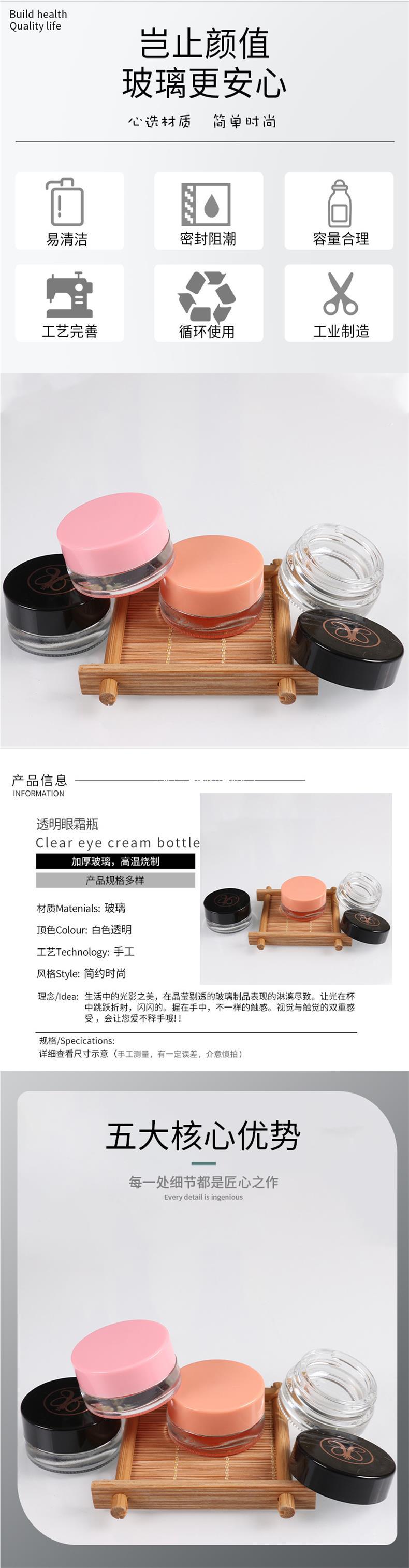 Venta al por mayor de botellas de vidrio transparente para crema de ojos, botellas vacías selladas para crema.