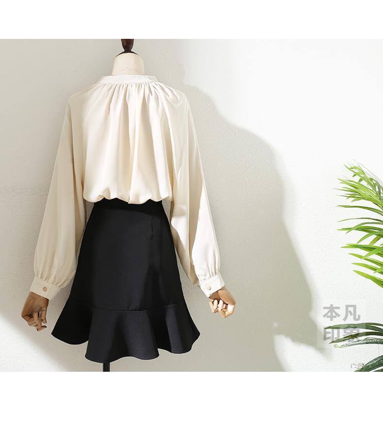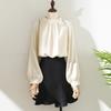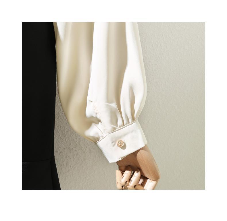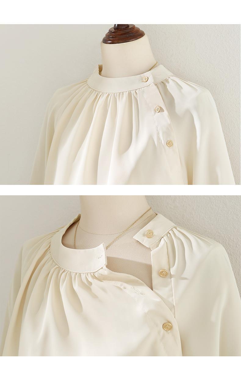 Camisa de gasa satinada con hebilla diagonal para mujer, primavera y otoño 2024, nuevo diseño retro de cuello alto pequeño, top elegante de nicho