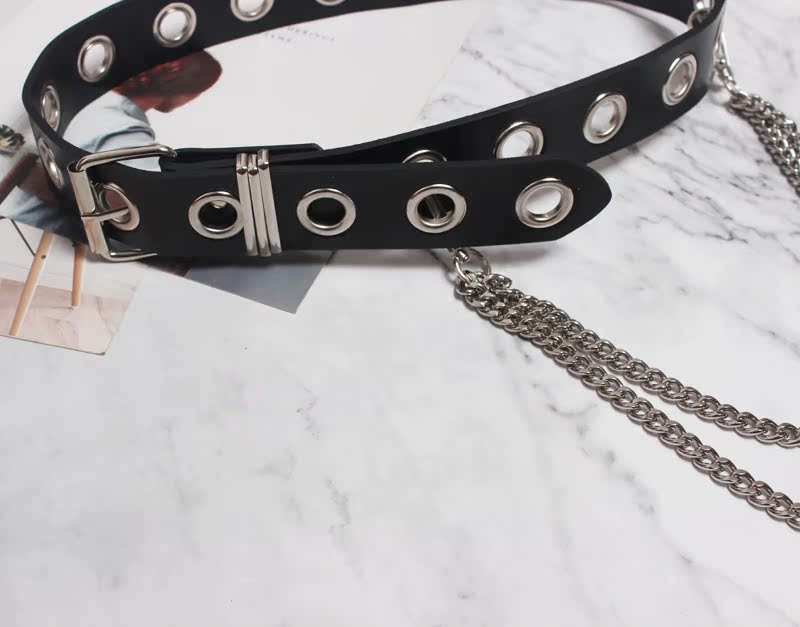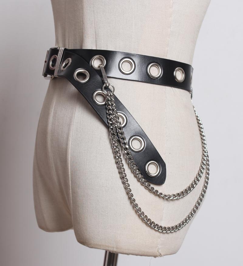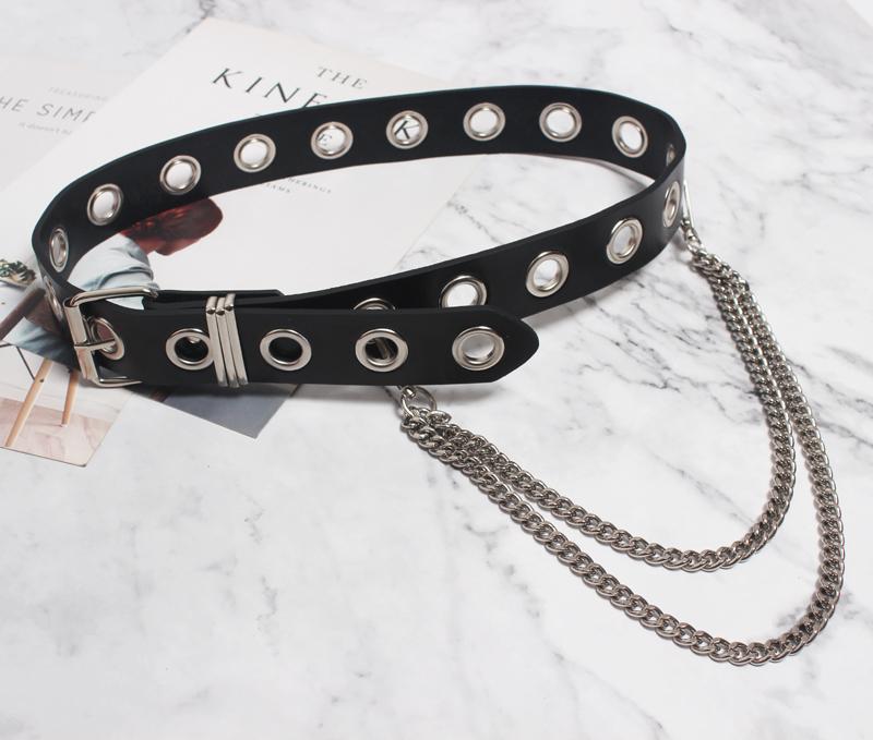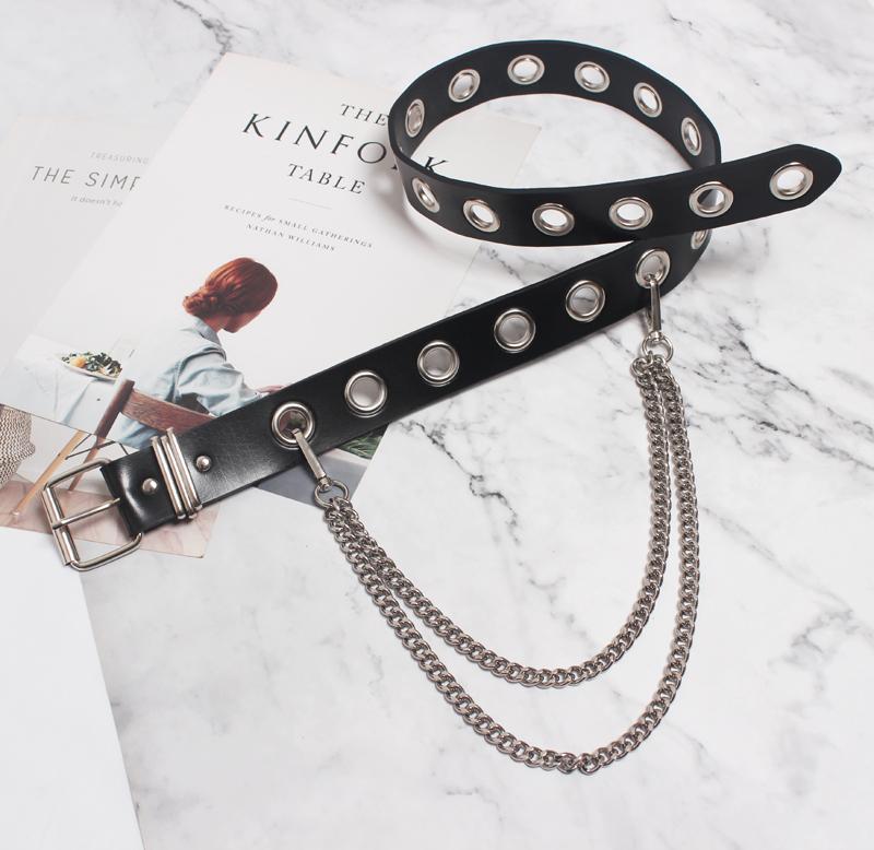 Cinturón de cuero con cadena de metal personalizado, estilo europeo y americano, para mujer, con hebilla de alfiler elegante y versátil, con cierre de cintura, 2020