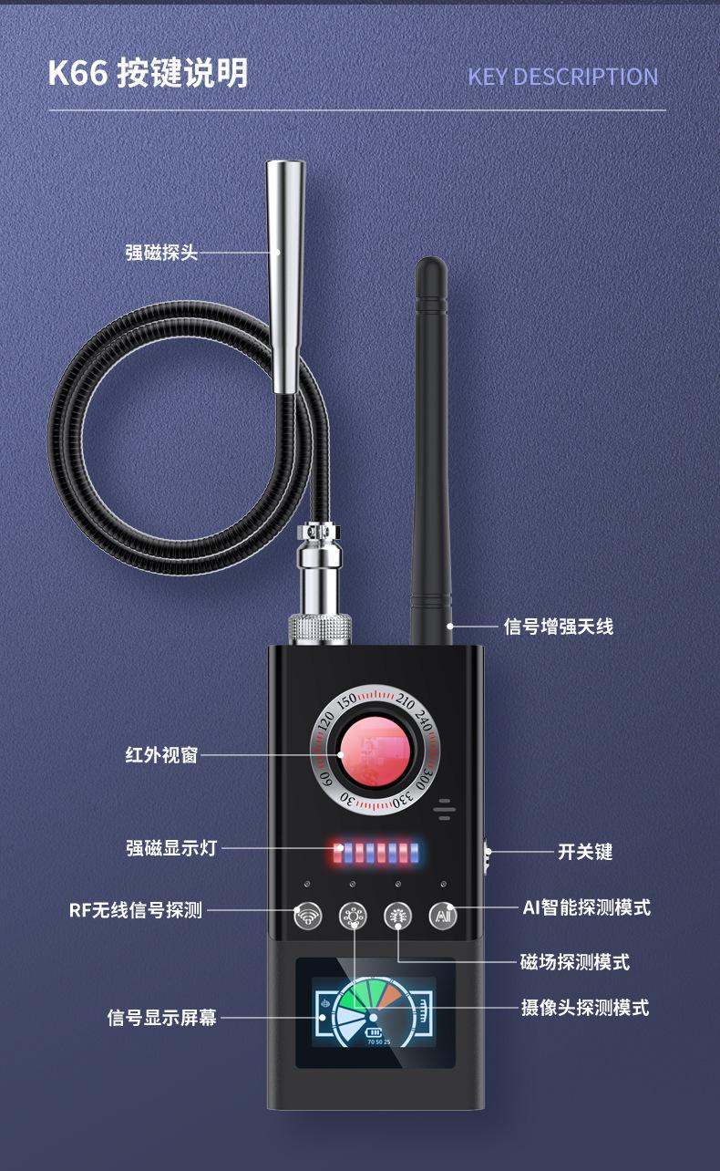 Detector de señal K66, cámara de hotel, cámara antirrobo, detección de coche, monitoreo antiposicionamiento, detector GPS, escaneo
