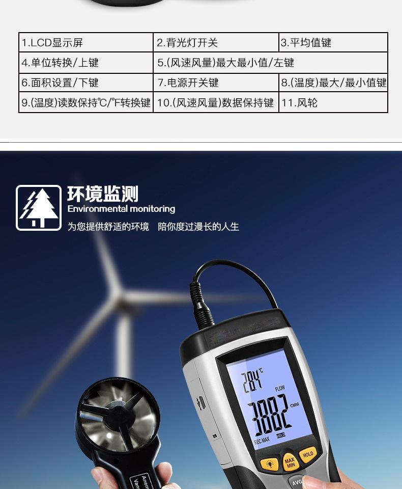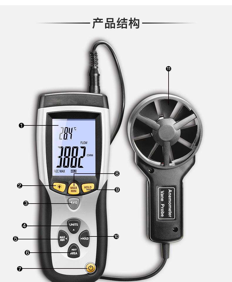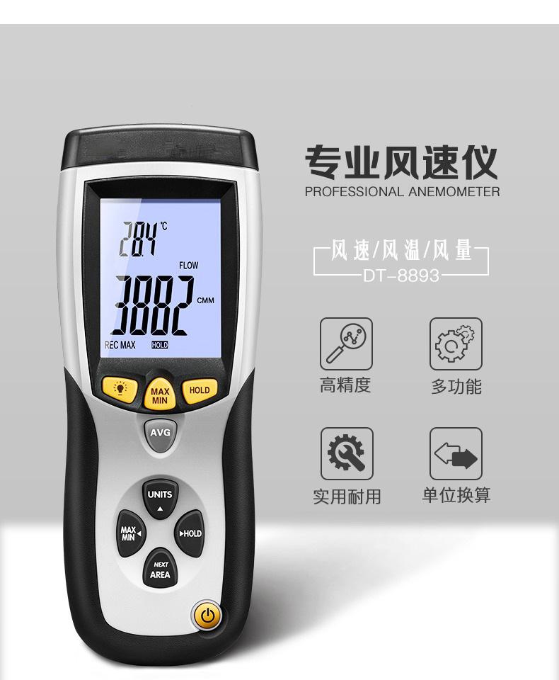 Anemómetro portátil DT-8893, analizador de velocidad del viento con impulsor de alta precisión, medidor de velocidad del aire portátil.