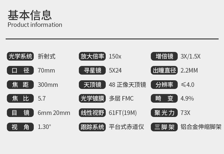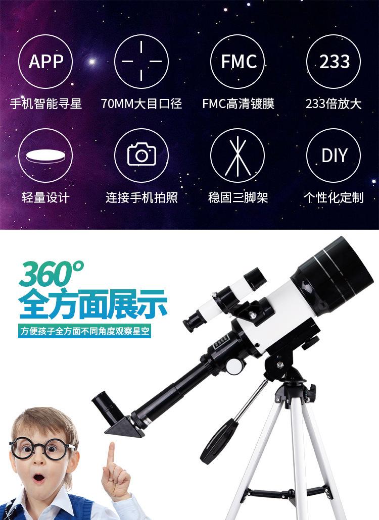 Telescopio Astronómico SUNCORE Shun Guang F30070 Alta Potencia Alta Definición Visión Nocturna Fotografía con Trípode para Estudiantes