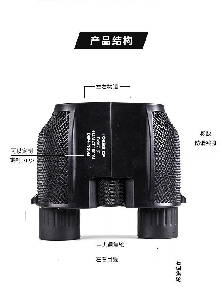 Fabricante Venta al por Mayor Plegable 10X25 Pequeños Paul Viaje Suministros para Exteriores Mini Binoculares de Alta Definición y Alta Potencia