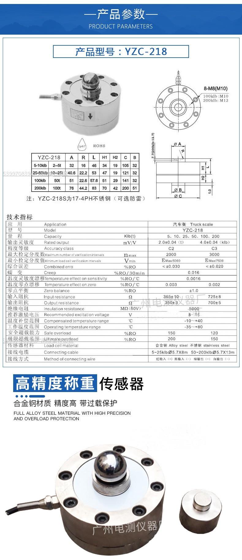 Máquina de Pruebas de Materiales Guangzhou Yzc-218/3T5T10T Sensor de Pesaje Módulo de Pesaje Tipo Radios Alta Precisión