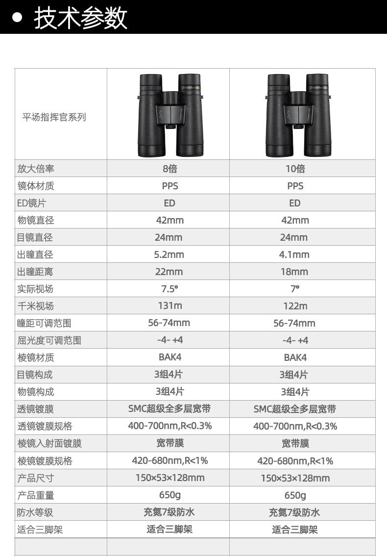 YUKO 10X42ED Commander Flat Field Mirror, YUKO 8X42ED Commander Flat Field Mirror