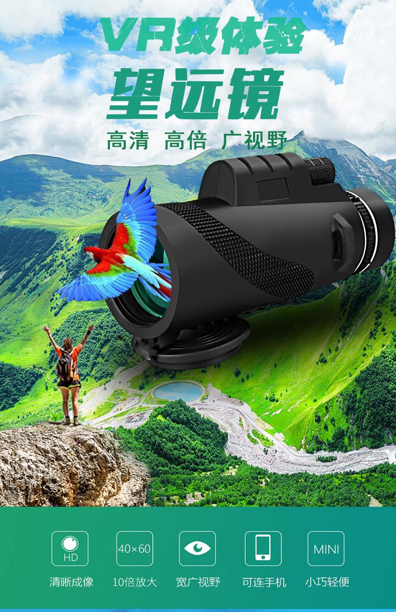 Fabricante Venta al por Mayor Monocular 40X60 de Alta Potencia y Alta Definición Telescopio de Enfoque para Fotografía con Teléfono Móvil, Profesional Concierto Viaje