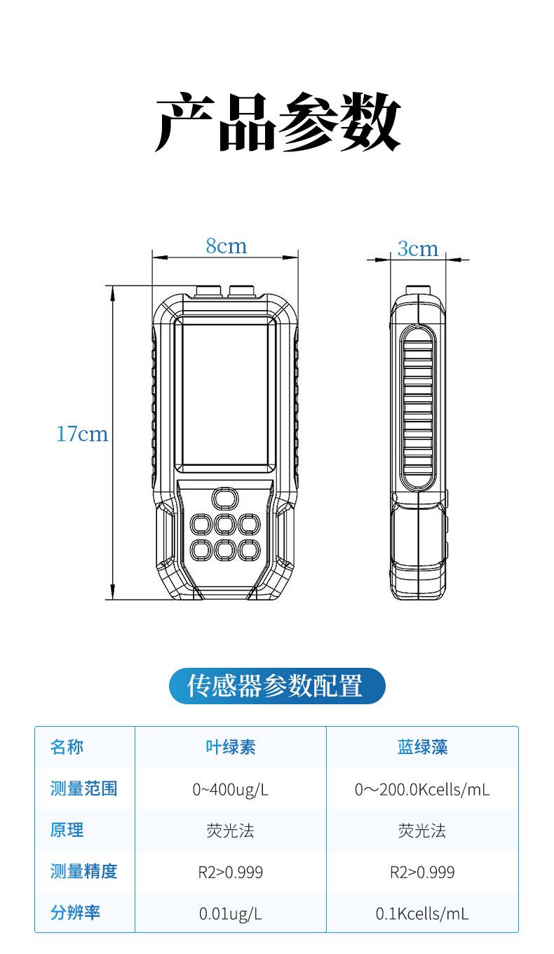 Submersible chlorophyll detector, Blue-green algae detector in water, 2-in-1 detector