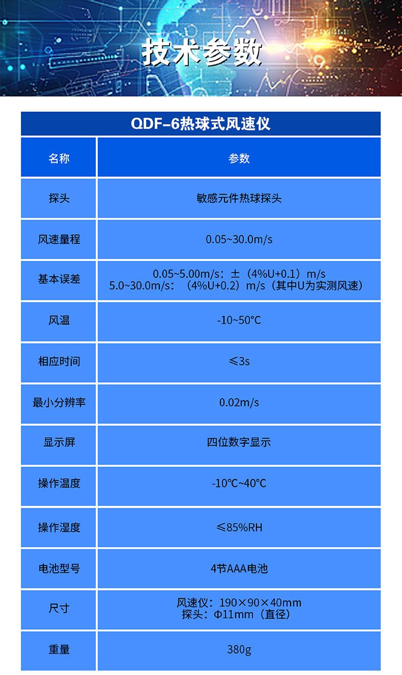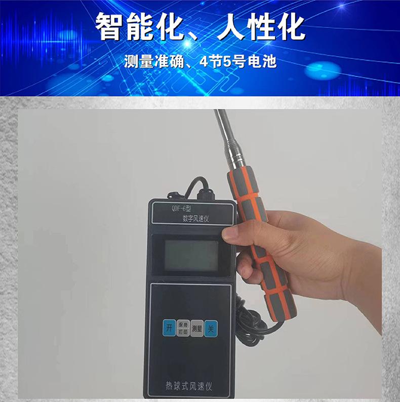 Anemómetro portátil de bola caliente tipo QDF-6, instrumento de medición de baja velocidad del viento.