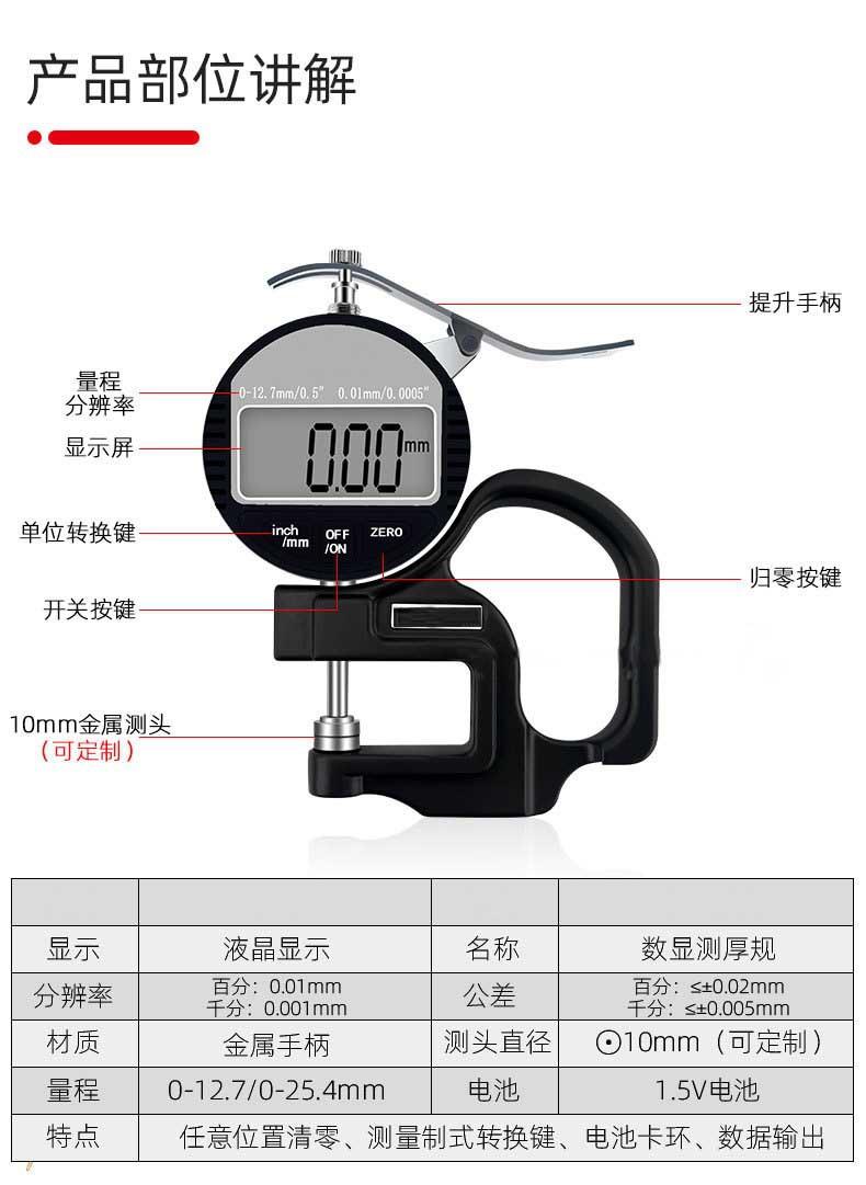 Compra Medidor de espesor de película de papel y cuero de 0,001 mm con pantalla de porcentaje y mil puntos de alta precisión al por mayor en Joom.pro