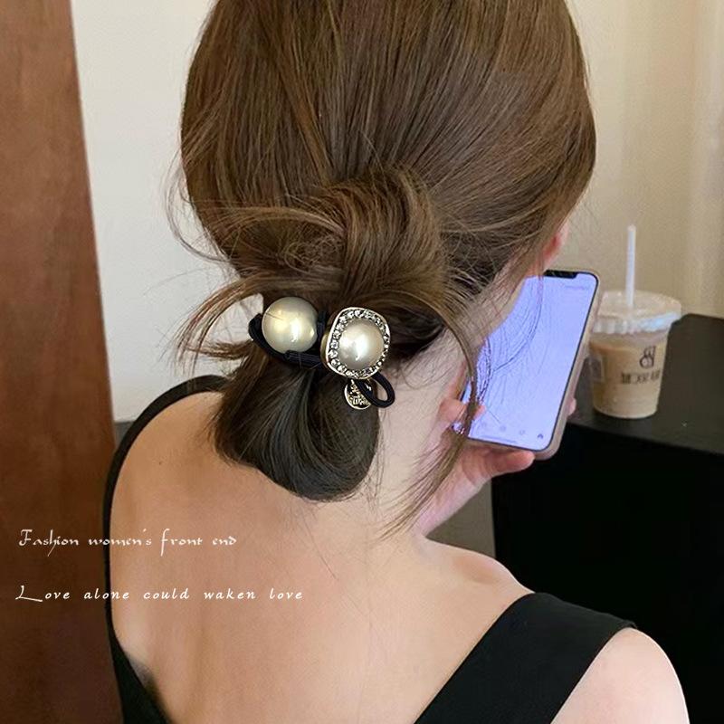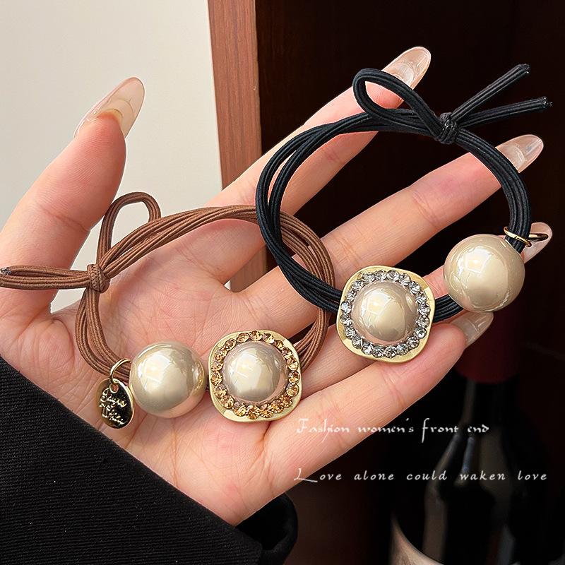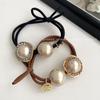 Cuerda para el cabello sencilla de perlas y pedrería para niños Anillo para el cabello con bola para el cabello para niñas Elegante para combinar con todo Tendón de goma Nuevo