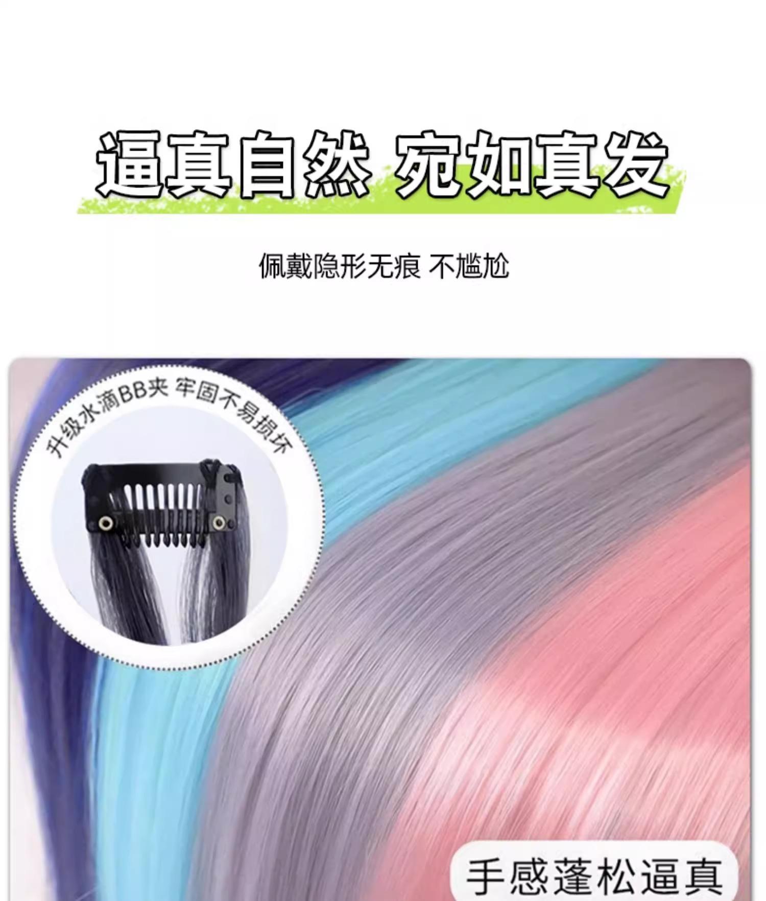| Peluca para mujer con flequillo partido en medio en la parte superior de la cabeza para cubrir el volumen del cabello esponjoso blanco y dar forma al rostro con flequillo de barba de dragón. |