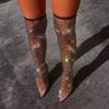 Botas de Tacón Alto de Cuero Patentado de Talla Grande Botas de Tacón Grueso para Mujer a la Moda Botas por Encima de la Rodilla para Actuación Escénica Botas Sexy para Club Nocturno