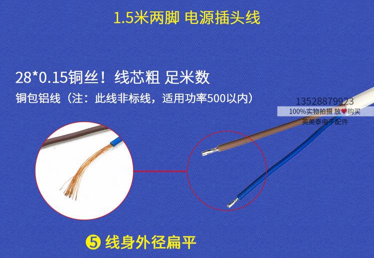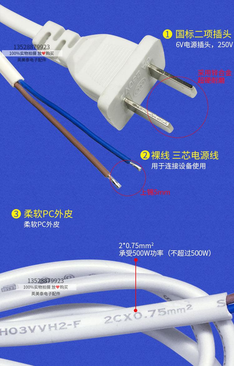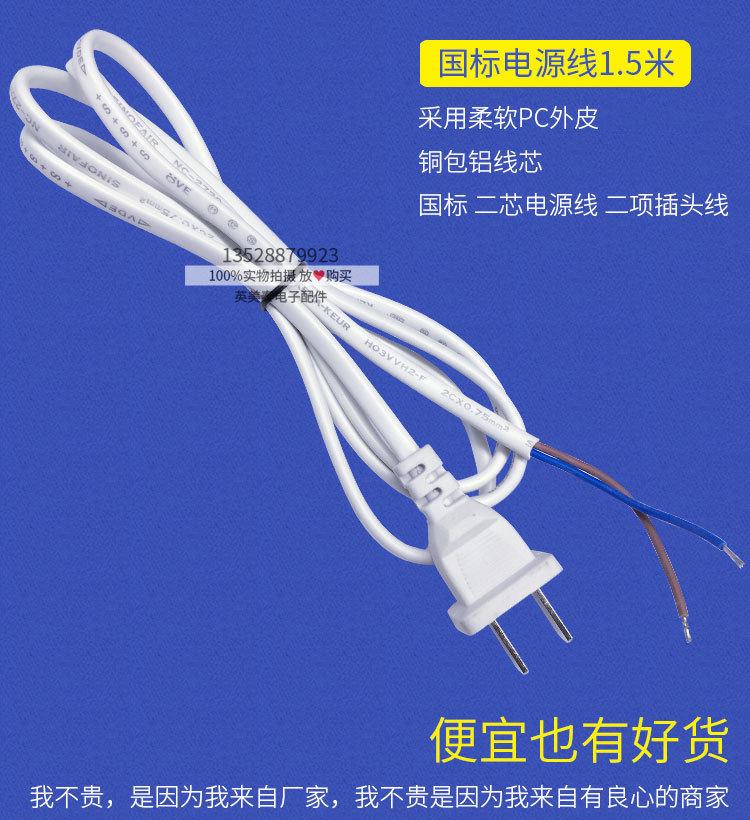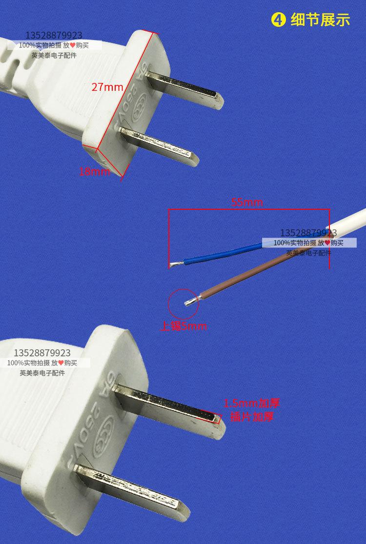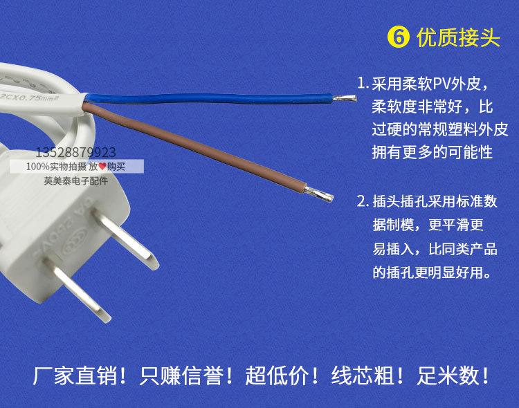 Cable de enchufe al por mayor, dos enchufes planos de 1,5 m y 2 m, cable de enchufe de unión de dos núcleos/dos patas, cable de alimentación blanco