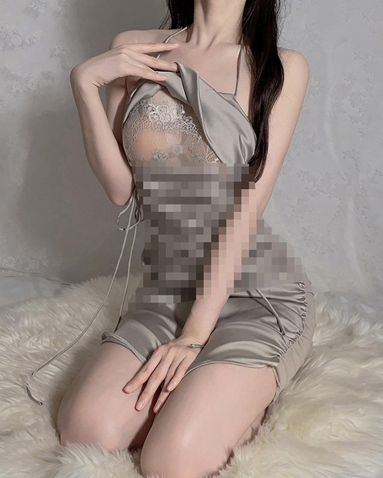 Lencería sexy con tirantes y falda hueca para la cadera, uniforme de secretaria sexy, pijama tentador de pecho pequeño 1136