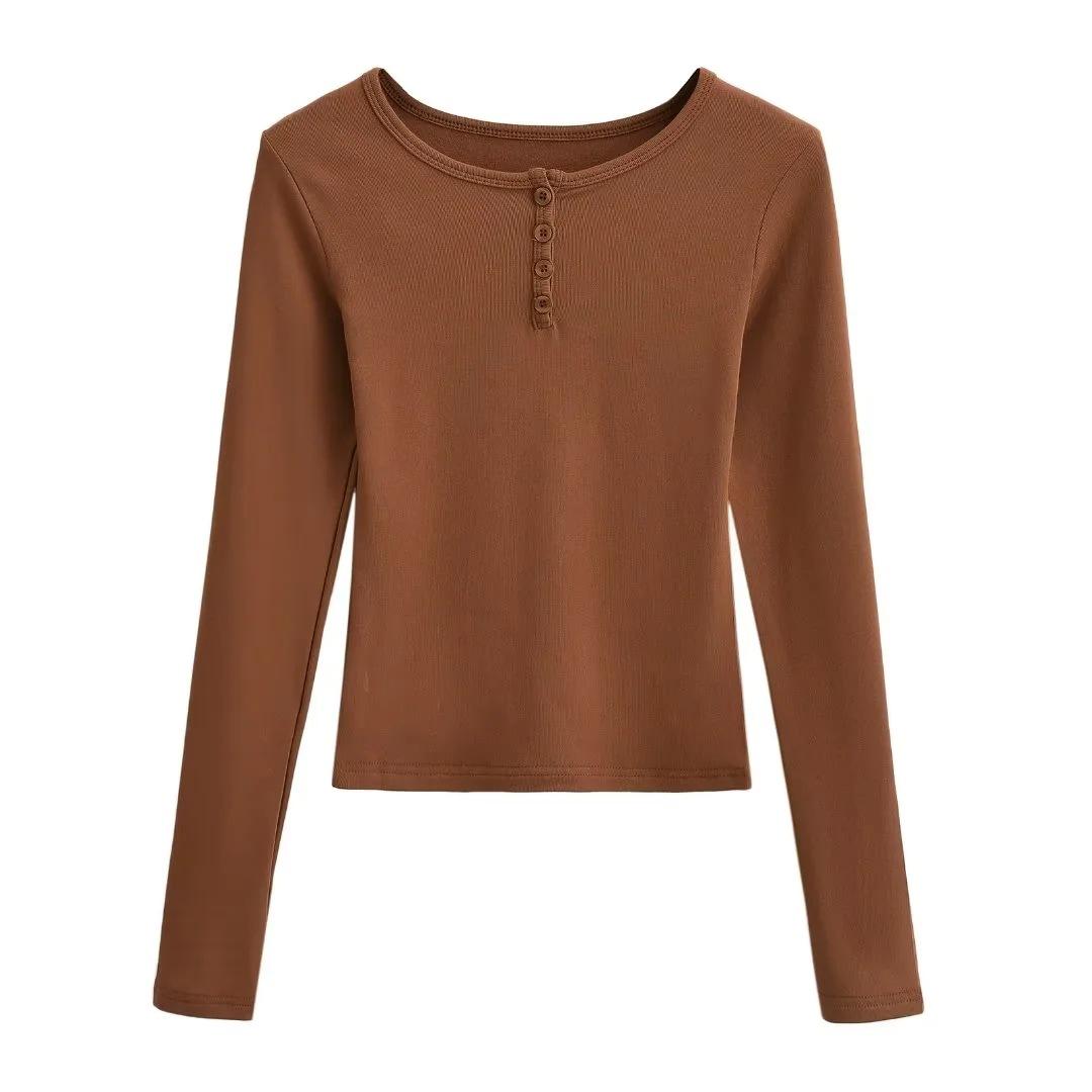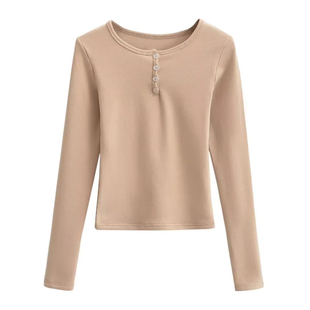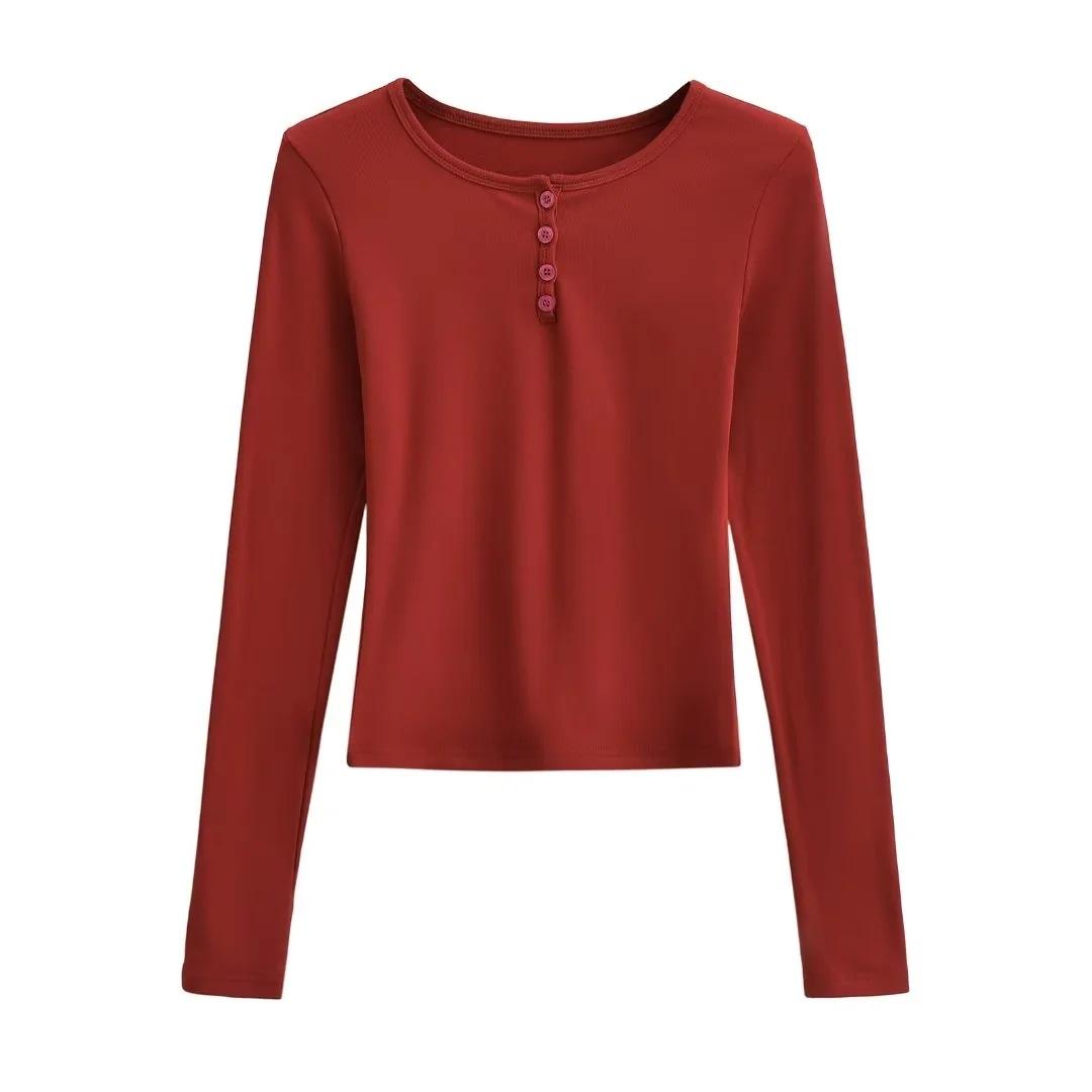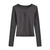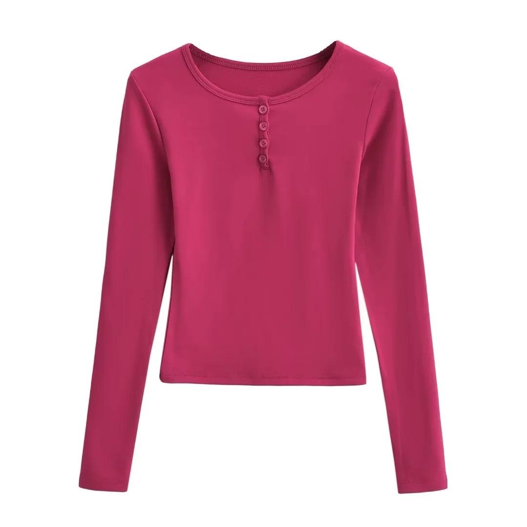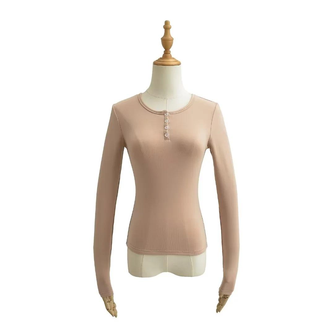 Camisa de manga larga de otoño e invierno de ocho colores con botones de cuello redondo de terciopelo estilo europeo y americano, nueva blusa versátil y adelgazante.