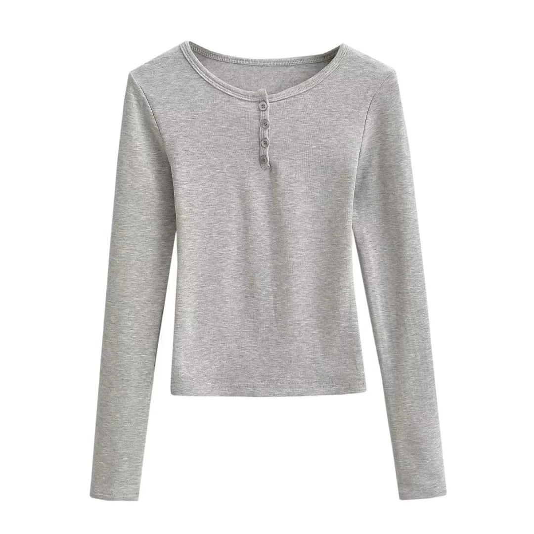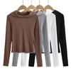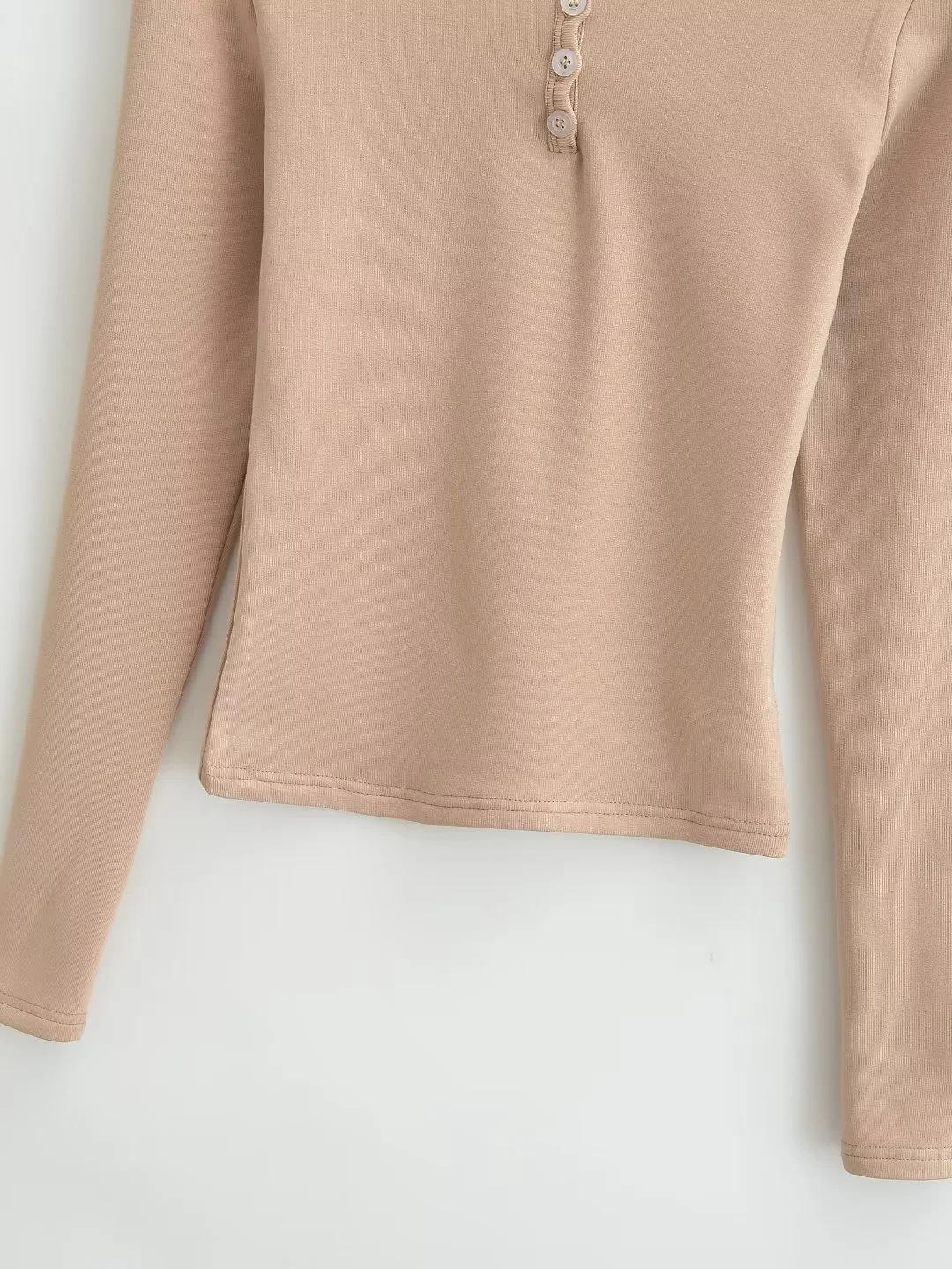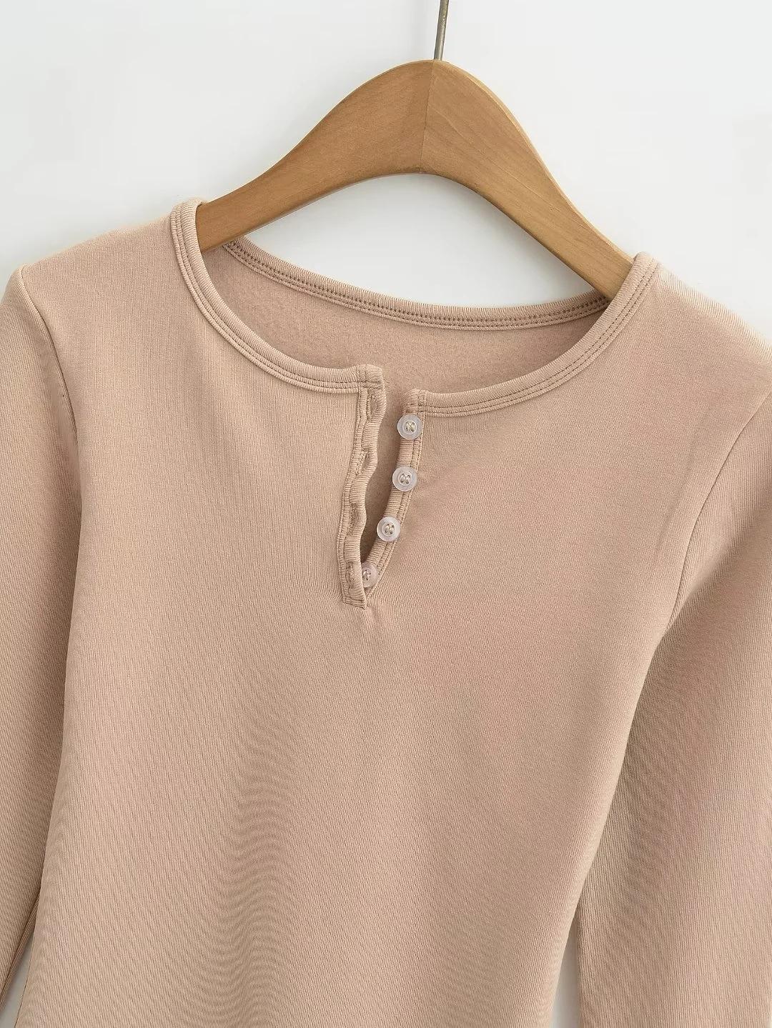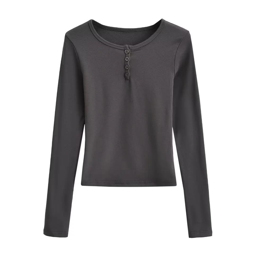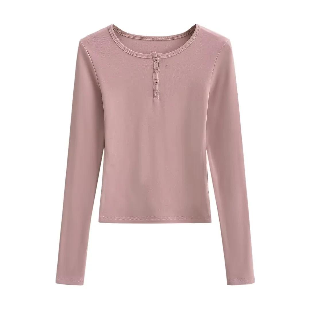 Camisa de manga larga de otoño e invierno de ocho colores con botones de cuello redondo de terciopelo estilo europeo y americano, nueva blusa versátil y adelgazante.