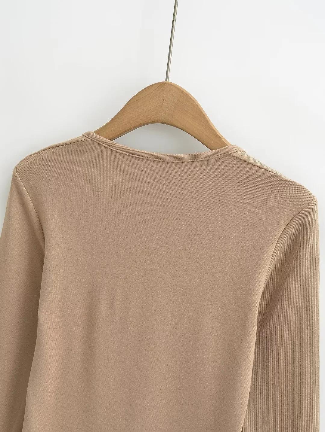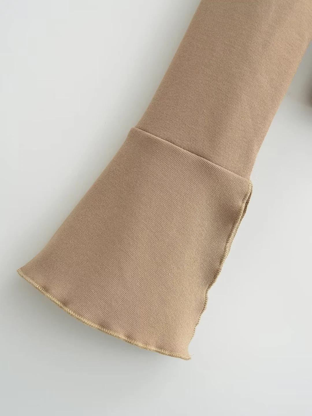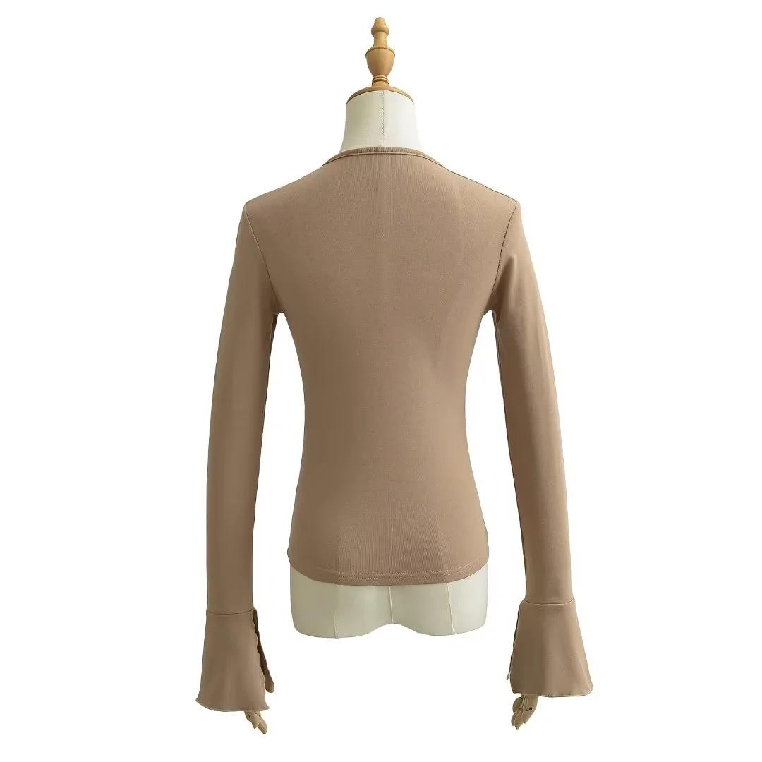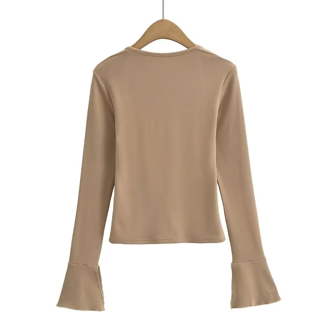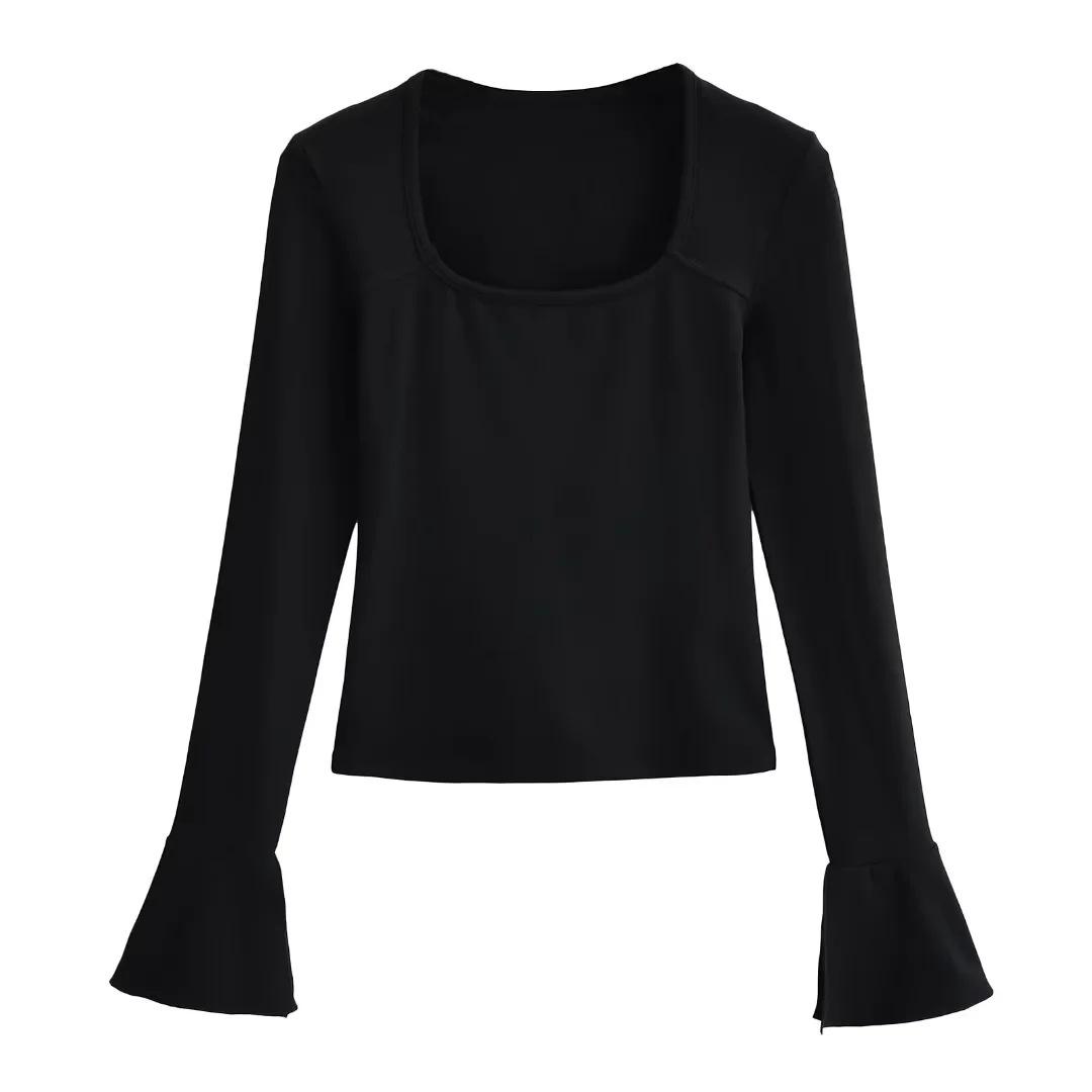 Compra Camiseta de manga acampanada con cuello cuadrado y forro polar para mujer, temporada 2023, corte entallado, adelgazante, color liso, interior de manga larga al por mayor en Joom.pro