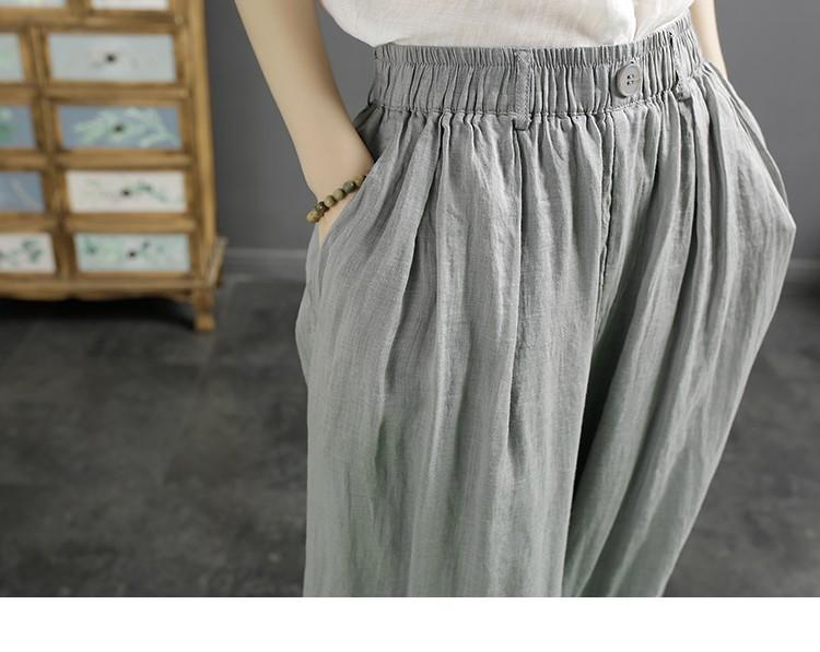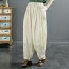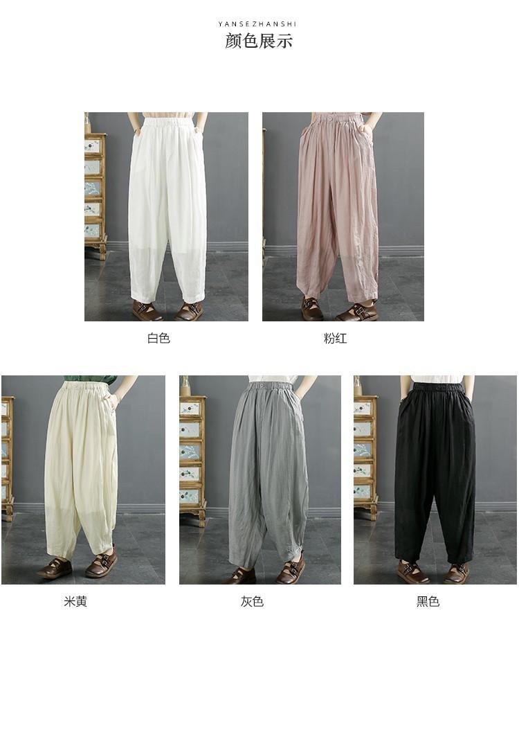 Pantalones casuales vintage de algodón y lino de color liso para mujer, novedad de verano 2023, pantalones harén holgados y adelgazantes que combinan con todo.