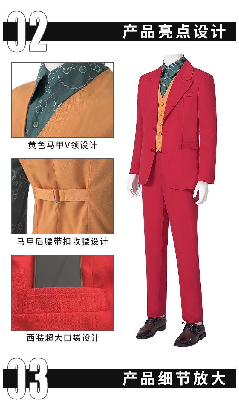 Hombre Duque Payaso Doble Loco Joker Cosplay Fénix Mismo Traje Rojo Completo Cos