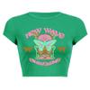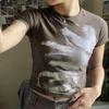 Camiseta de manga corta con estampado de mariposa verde retro de chica sexy americana para mujer, nueva camiseta de verano ajustada adelgazante bm top de moda ins