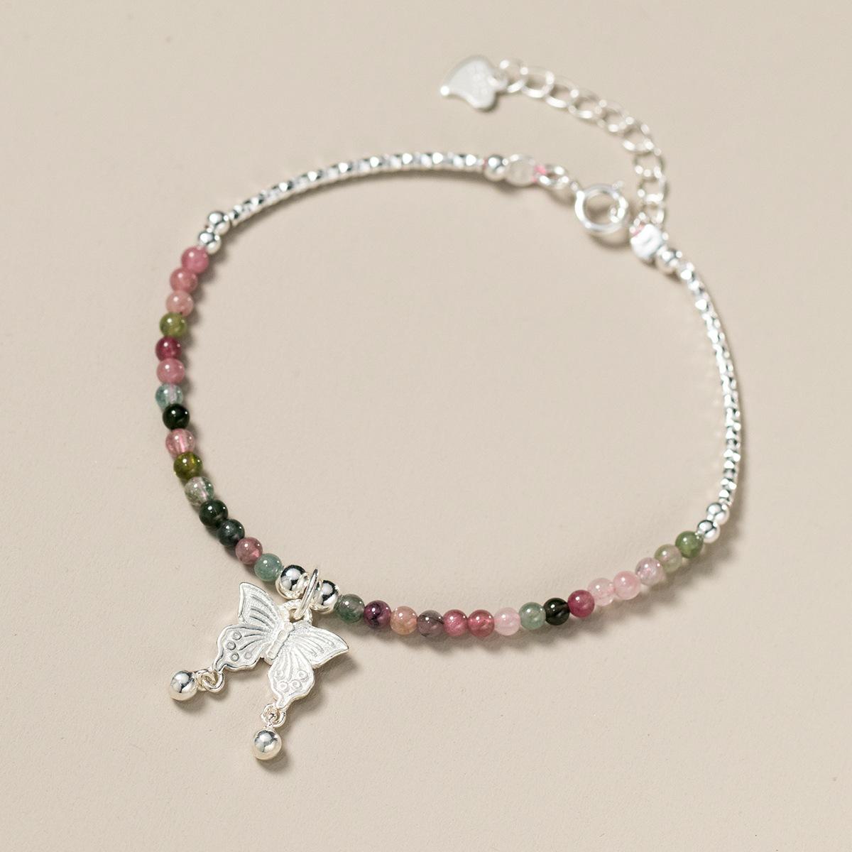 Compra Pulsera ajustable de plata S925 sencilla fresca mariposa cuentas redondas turmalina para mujer diy joyería de mano al por mayor C0028 al por mayor en Joom.pro