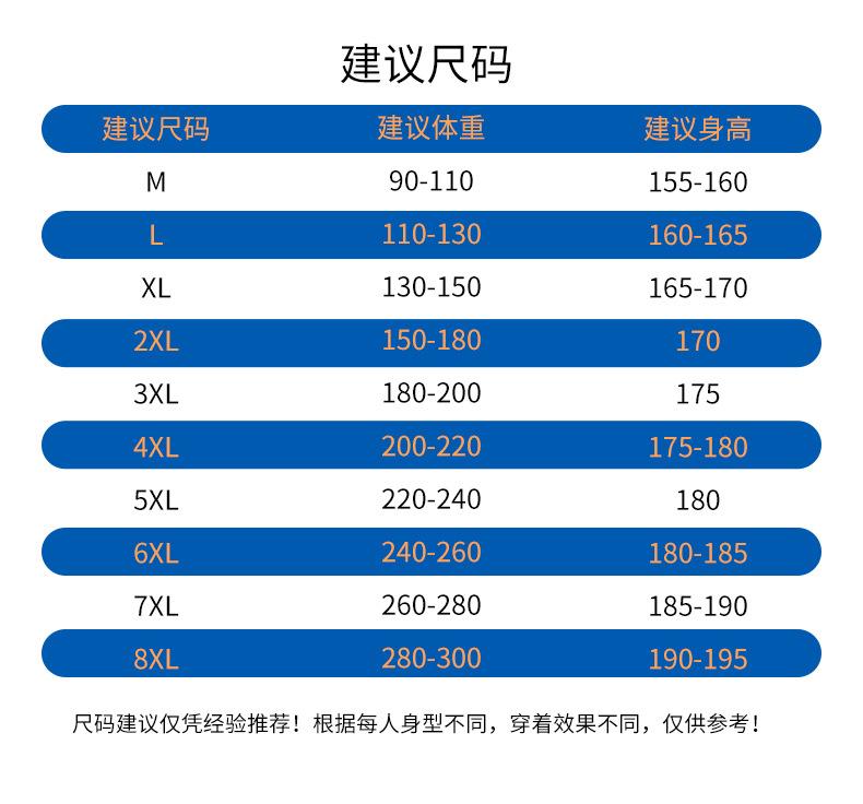 M, L, XL, 2XL, 3XL, 4XL, 5XL, 6XL, 7XL, 8XL
