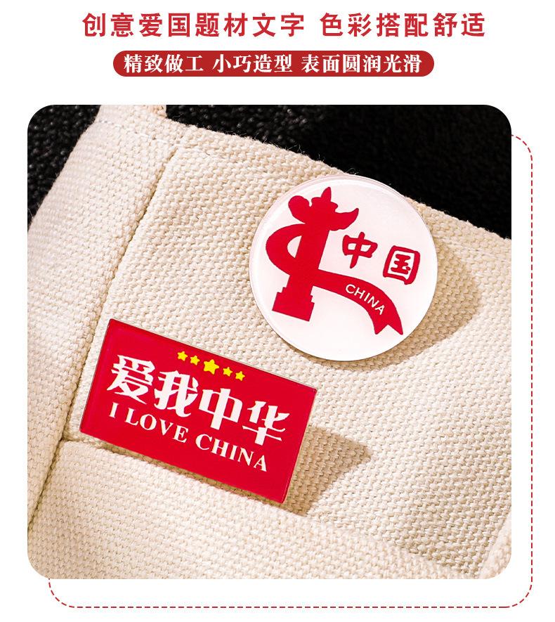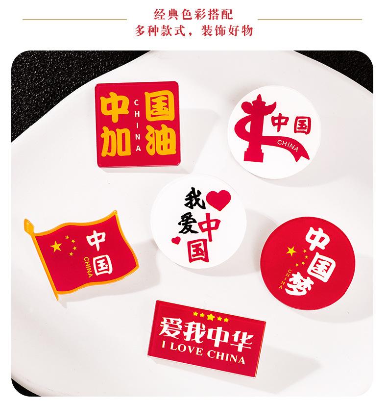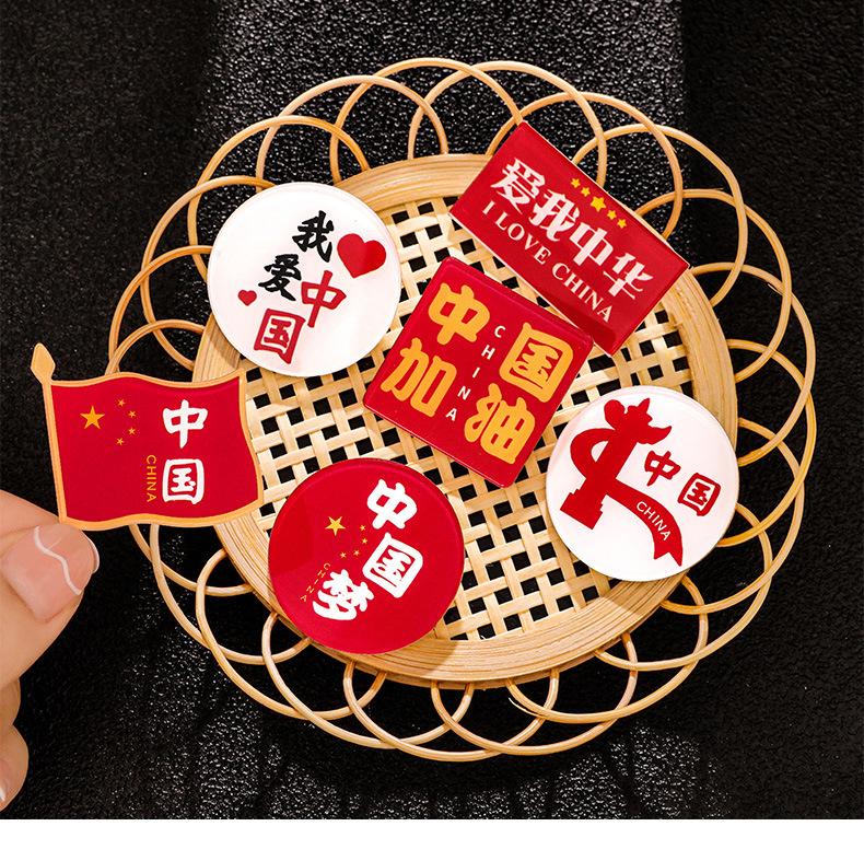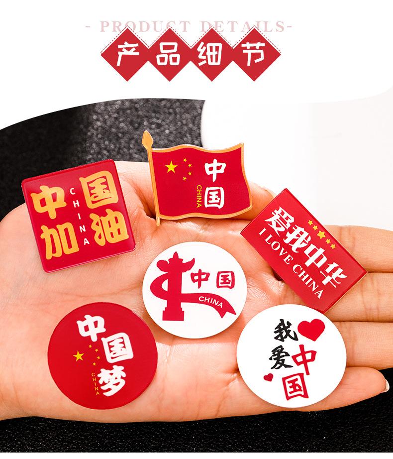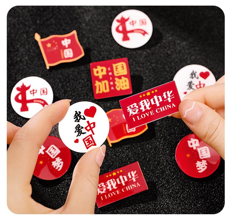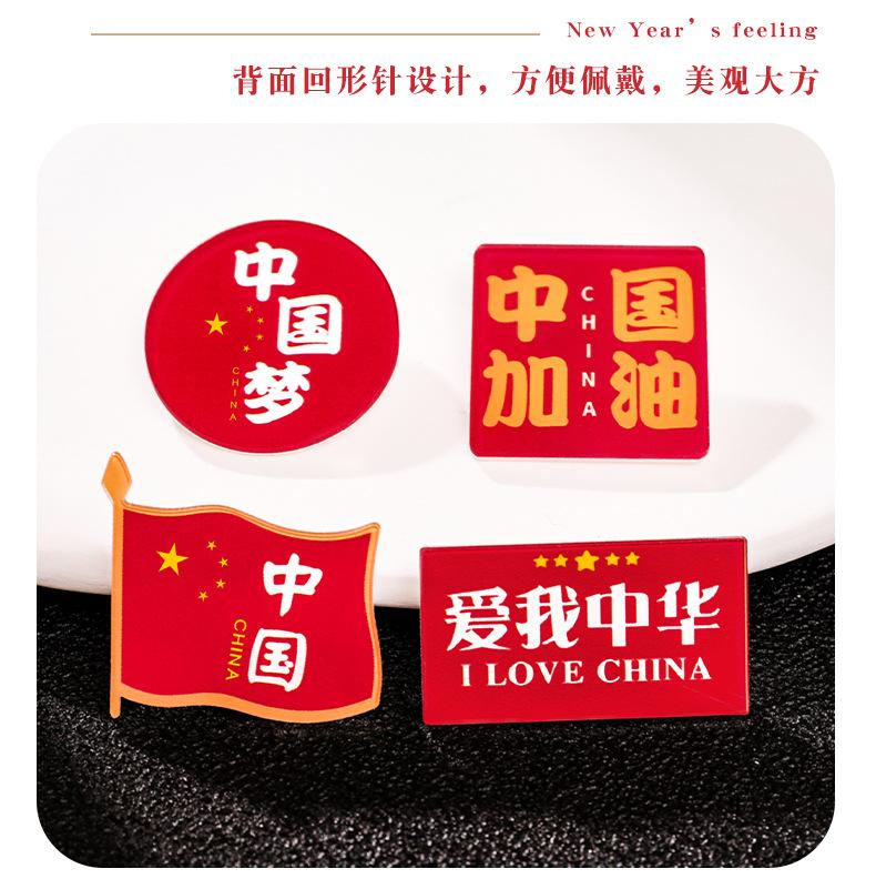 Broche con texto de estilo chino, insignia conmemorativa del Día Nacional, insignia de bandera roja, insignia de acrílico, pequeño regalo de vacaciones para estudiantes