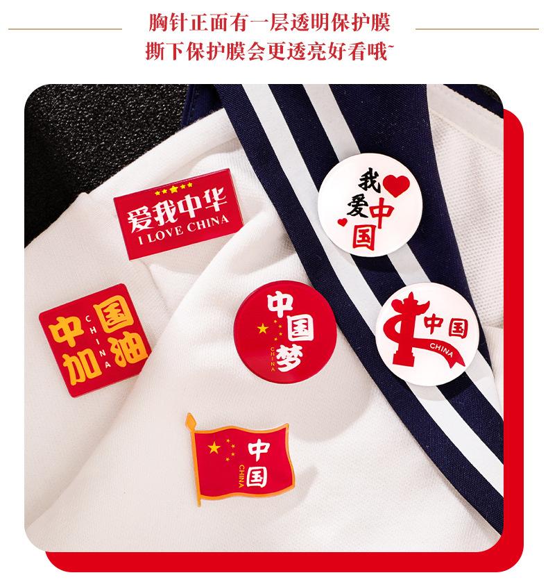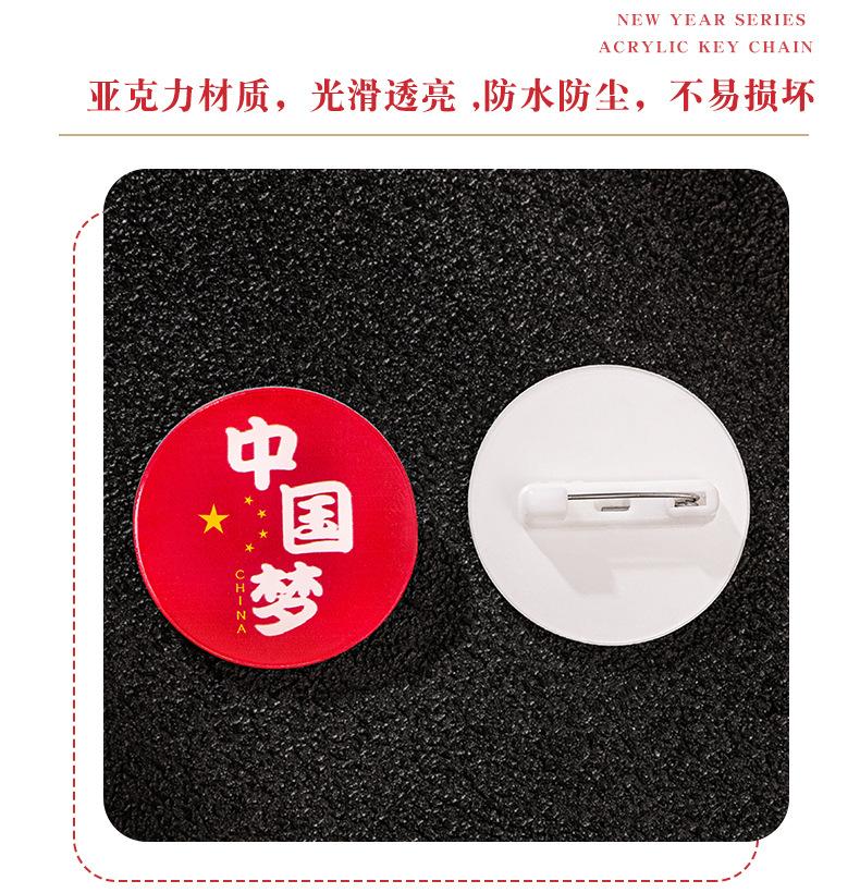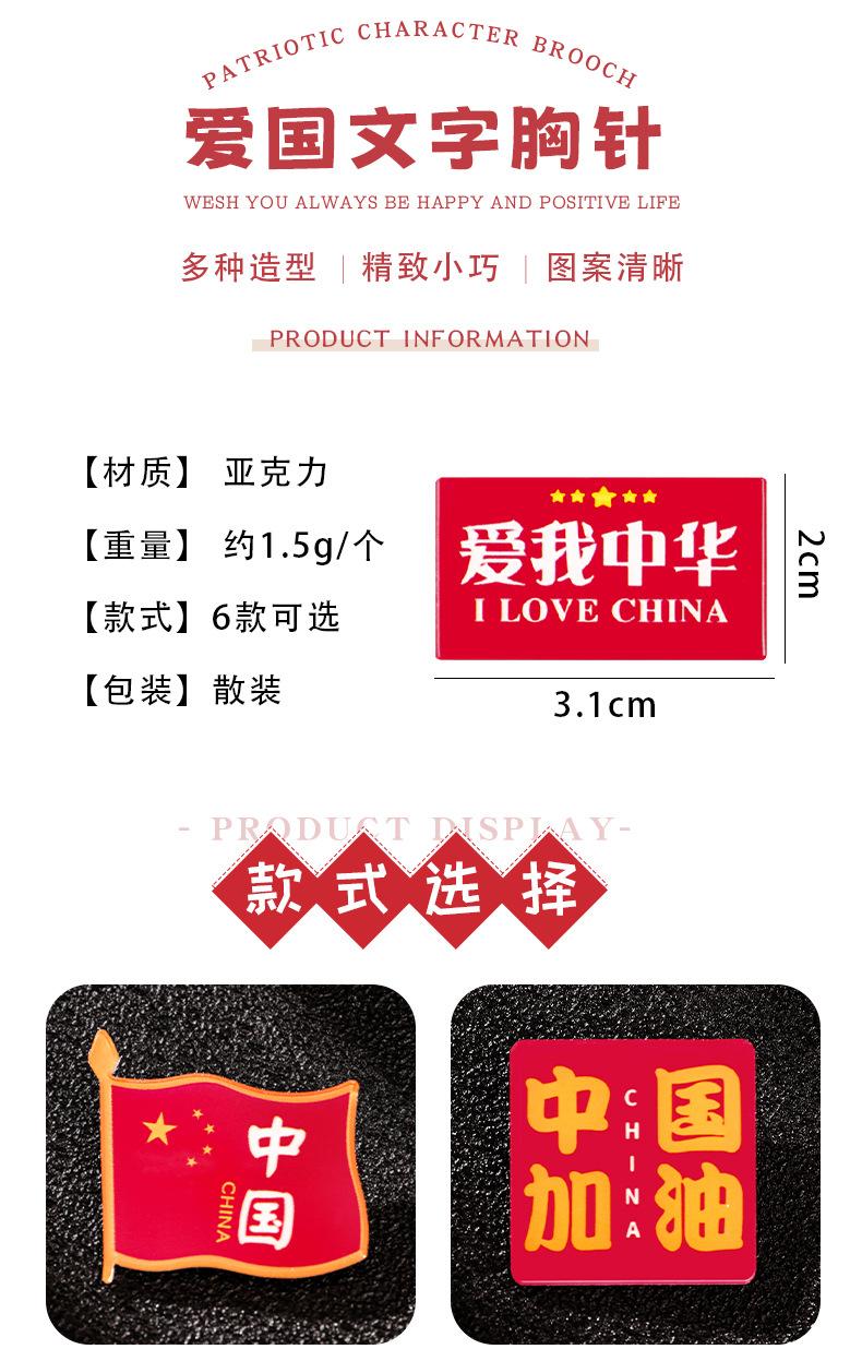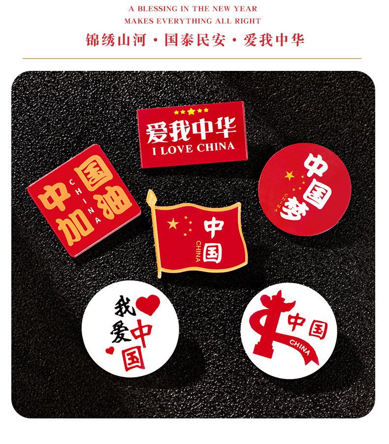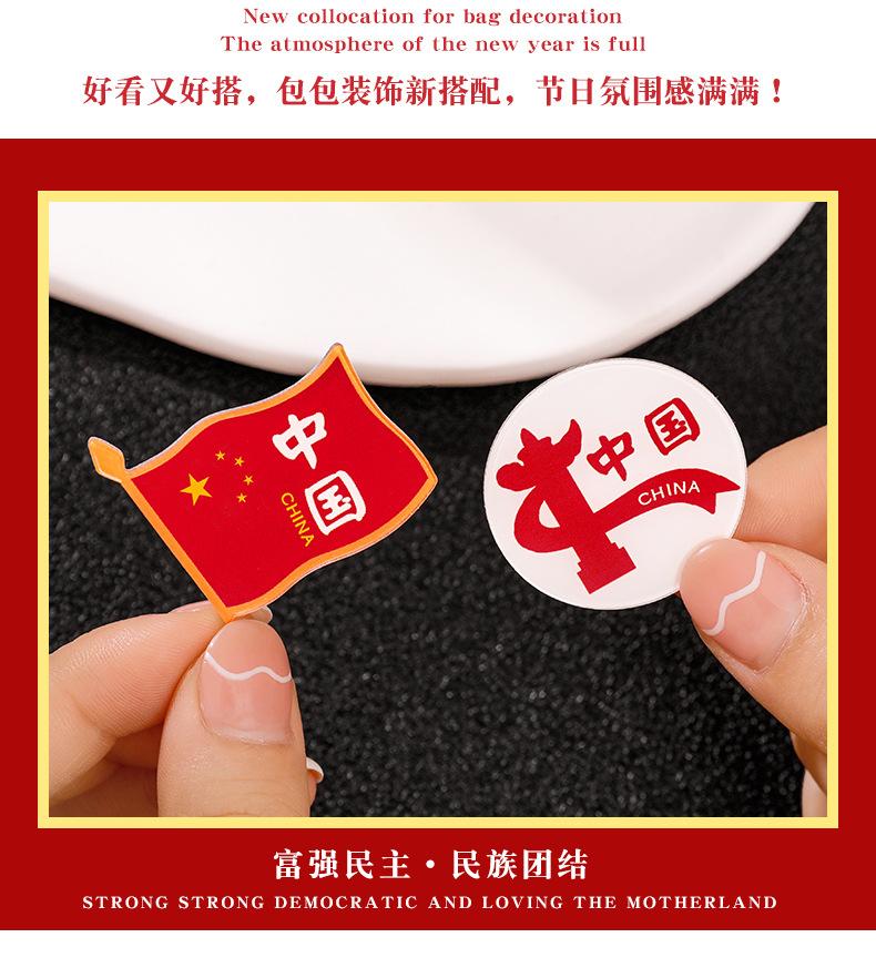 Broche con texto de estilo chino, insignia conmemorativa del Día Nacional, insignia de bandera roja, insignia de acrílico, pequeño regalo de vacaciones para estudiantes
