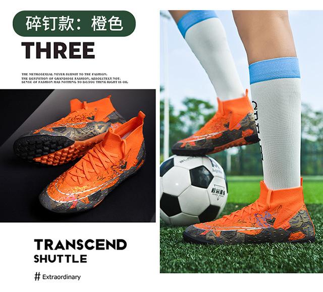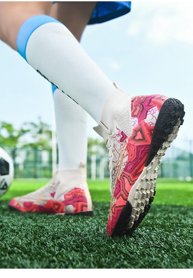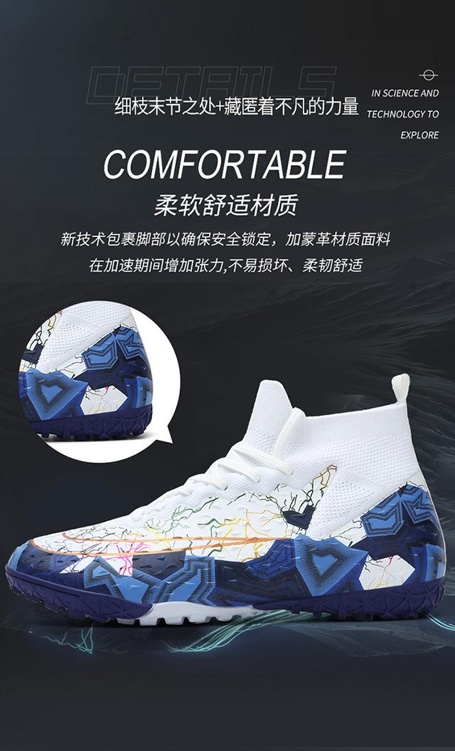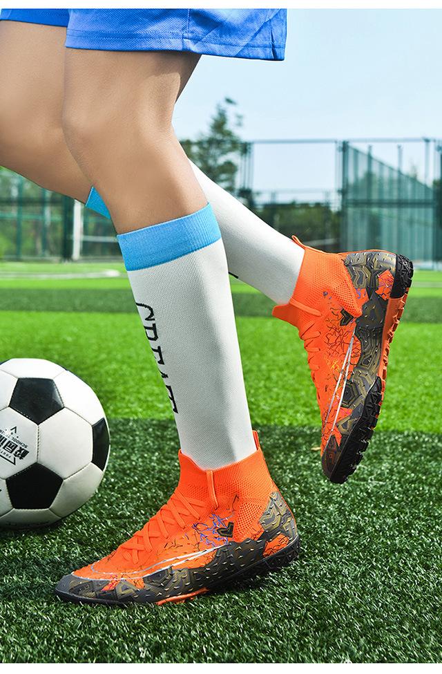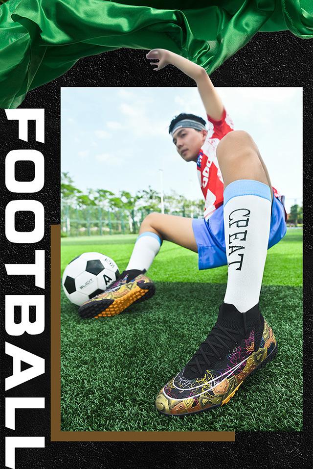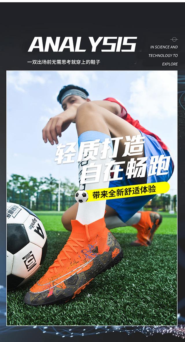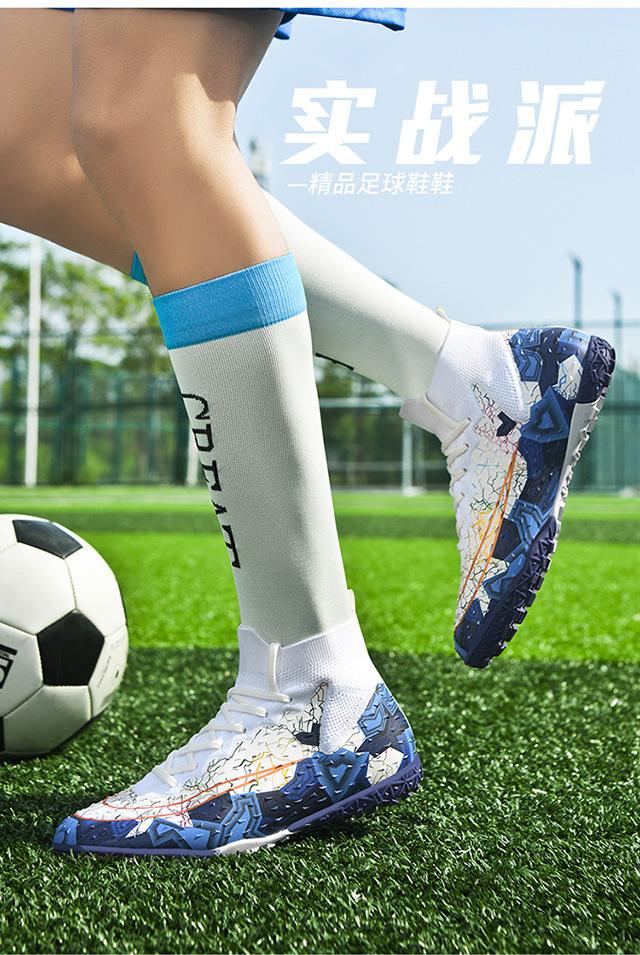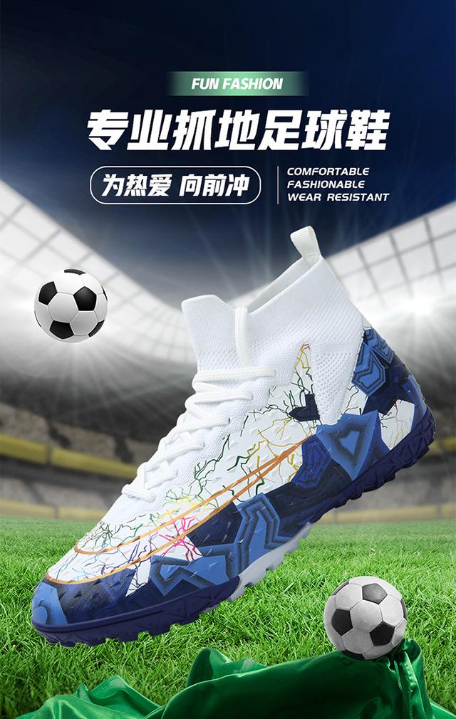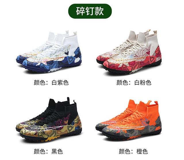 Zapatos de fútbol de caña alta transfronterizos para comercio exterior, tacos para hombre y mujer, césped artificial, competición infantil, tacos rotos, entrenamiento, venta al por mayor