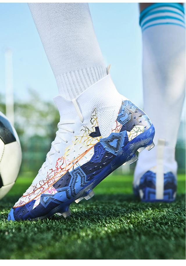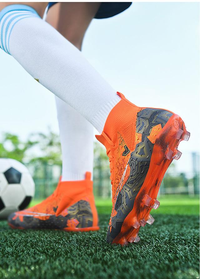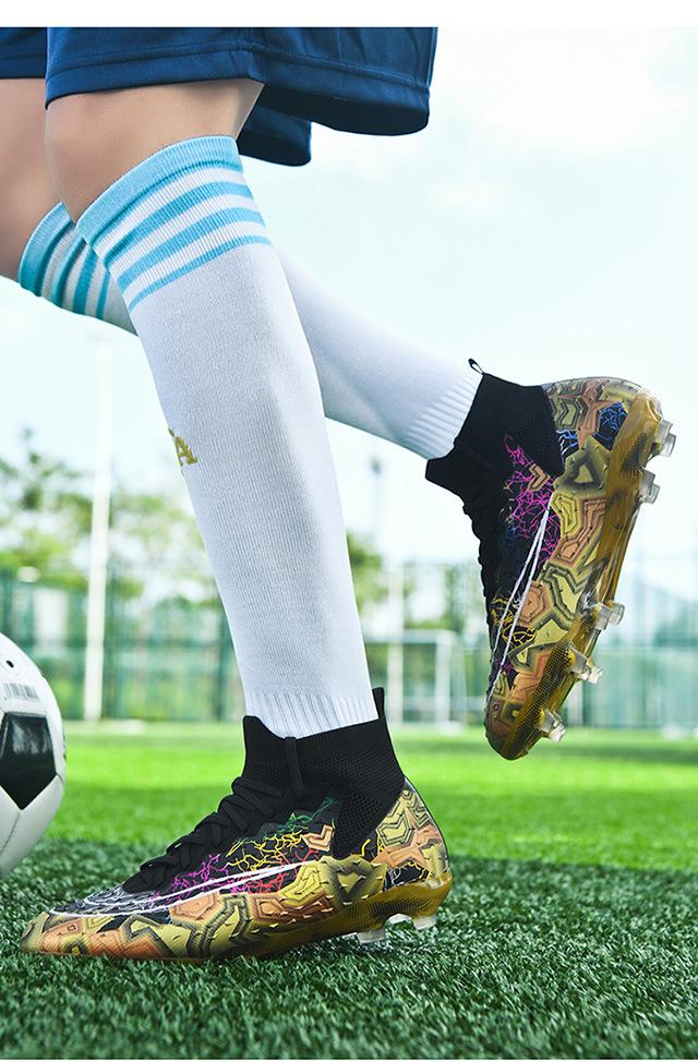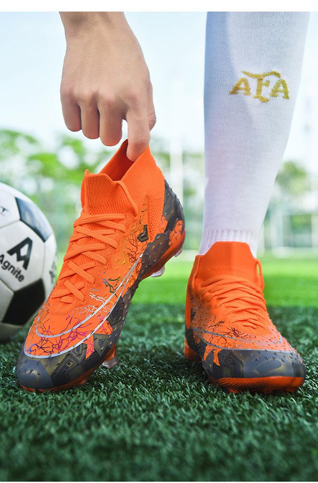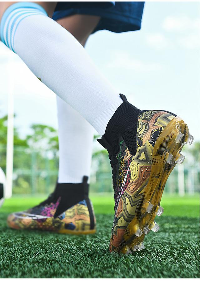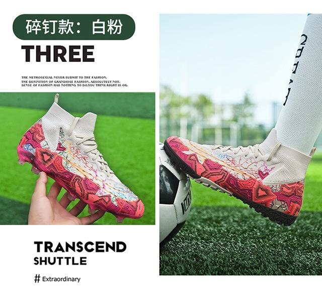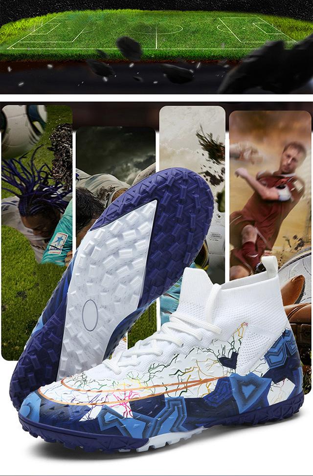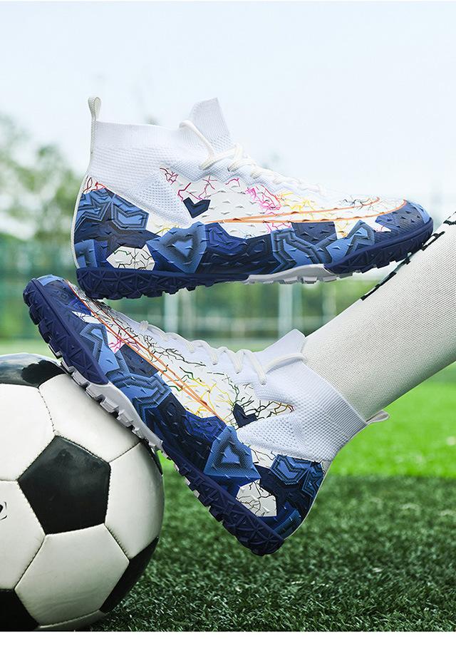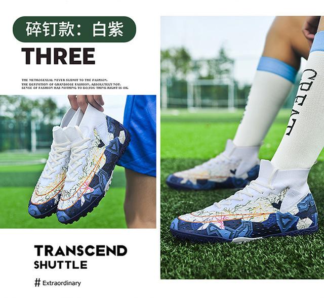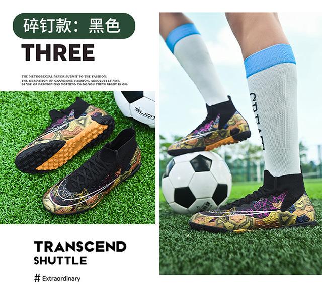 Zapatos de fútbol de caña alta transfronterizos para comercio exterior, tacos para hombre y mujer, césped artificial, competición infantil, tacos rotos, entrenamiento, venta al por mayor